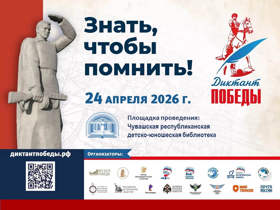 24 апреля 2026 года Чувашская Республика вместе со всей страной проведет Международную историческую акцию «Диктант Победы». Участники Диктанта смогут проверить свои знания о событиях и героях Великой Отечественной войны. Сделать это можно на нескольких тысячах площадок в России и за рубежом, в том числе и в Чувашской…
