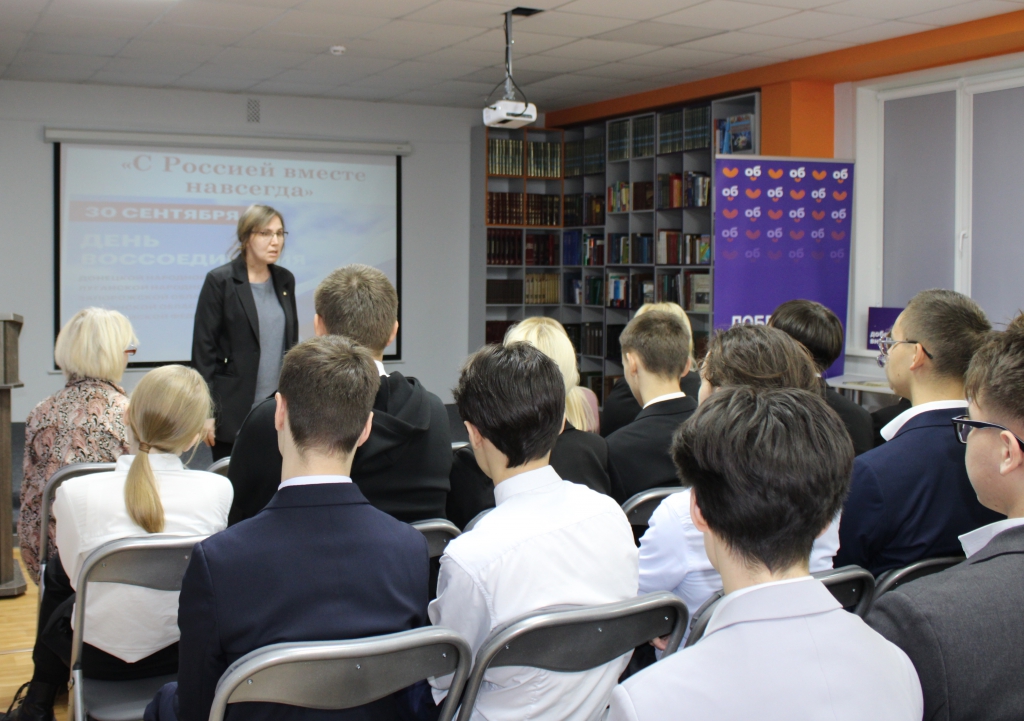 Основным выступающим по теме стала лектор Российского общества «Знание», ветеран органов Прокуратуры Российской Федерации Ирина Иванова. Она акцентировала внимание собравшихся на теоретических аспектах понятий самоопределения, государственности, независимости, суверенитета и предложила ребятам сформулировать их понимание принадлежности к народу, определению национальности. Ирина Георгиевна объяснила важность соблюдения прав человека на родной язык и свободу выбора веры, закрепленных международным правом. В то время, как киевский режим, пришедший к власти в результате государственного переворота 2014 года, обстрелами, авиаударами, репрессиями пытался заставить жителей Донбасса забыть родной русский язык и православную веру. Для их защиты Российская Федерация начала Специальную военную операцию.