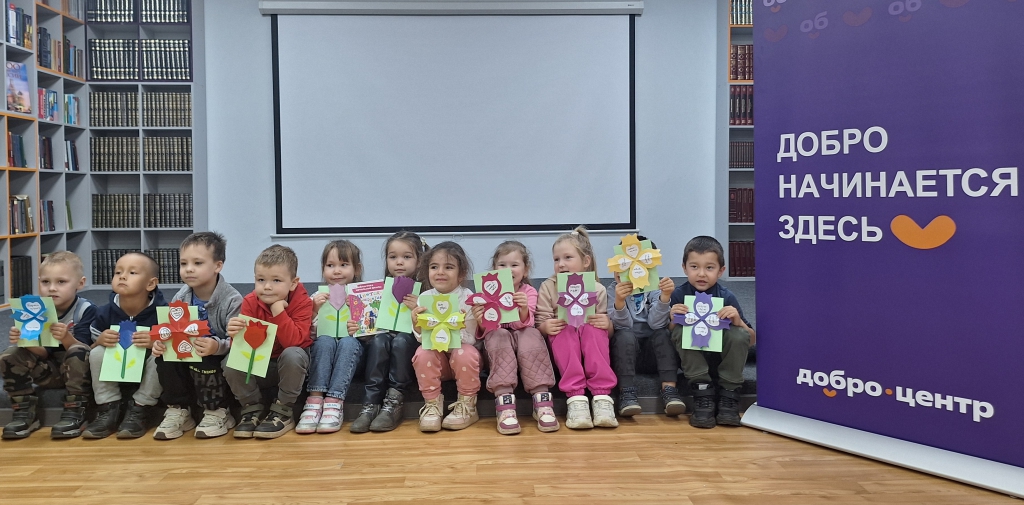 На память о встрече каждый ребенок получил яркий «Цветок любви и добра». На его лепестках ребята написали самые важные для них слова: «забота о маме», «помощь папе», «люблю брата или сестричку», «спасибо, бабушка» – все то, что делает наш мир теплее и светлее.