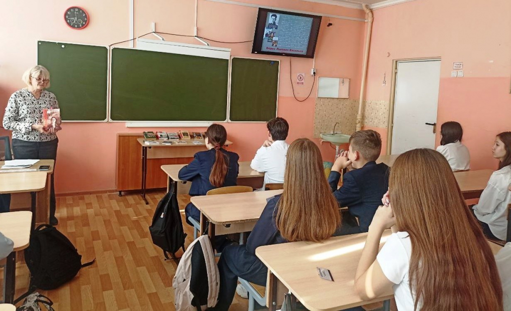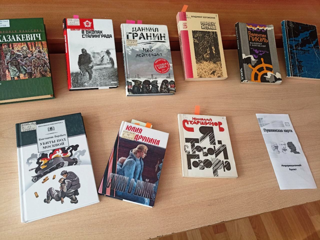 Специалист читального зала организовала для девятиклассников литературно-историческое досье «Солдатами не рождаются…». Подростки ознакомились с биографиями и творчеством писателей фронтового поколения: Бориса Васильева, Юрия Бондарева, Василя Быков, Юлии Друниной, Владимира Богомолова, Булата Окуджавы и др. Большинство из них ушли защищать Родину после школьных выпускных и из студенческих аудиторий, окончив ускоренные курсы военных училищ, хотя мечтали о мирных профессиях. Они понимали, что стать художниками, строителями, учителями, мирно жить не получится, если гитлеровцы захватят и уничтожат нашу страну, превратив нас в рабов. Поэтому и воевали, не жалея себя и победили. После войны стали писать, правдиво, по-своему, о том, что сами пережили – стихи, прозу, песни. Их книги стали документальными свидетельствами истории и, во многом, автобиографичны.