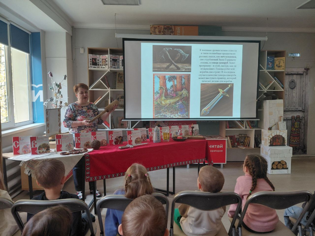 Главный библиотекарь провела ребят по удивительной тропе, связывающей волшебные предметы из сказок с современными технологиями. Скатерть-самобранка оказалась прообразом летательных аппаратов, а сапоги-скороходы – предвестниками скоростных средств передвижения.