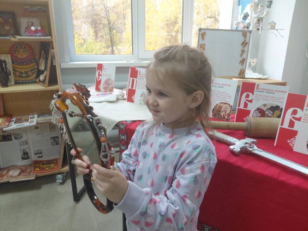 Интерактивная программа вовлекла малышей в участие в активностях. Они с удовольствием вспоминали сказочных персонажей, отгадывали загадки о волшебных предметах русских сказок и узнавали удивительные факты. Особенно детей заинтересовали истории о «живой» и «мертвой» воде. С энтузиазмом ребята делились знаниями о скатерти-самобранке, шапке-невидимке, волшебном зеркале и сапогах-скороходах, вспоминая сказки, где встречались эти чудесные предметы.