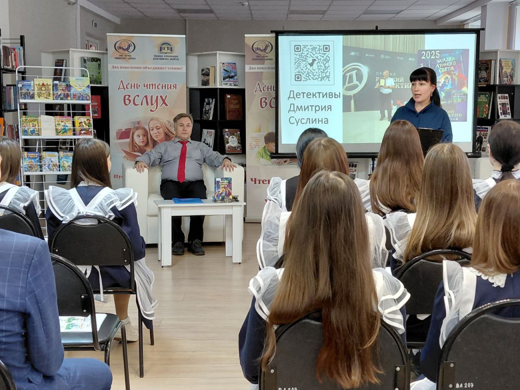 В Чувашской республиканской детско-юношеской библиотеке состоялась увлекательная встреча владельцев «Пушкинской карты» с известным российским детским писателем Дмитрием Суслиным. Она состоялась в рамках федерального проекта «Семейные ценности и инфраструктура культуры», который входит в национальный проект «Семья».