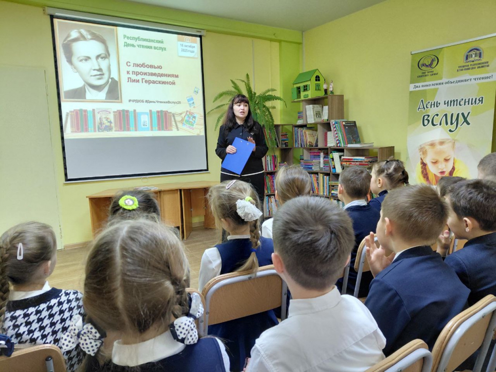 Особое внимание было уделено творчеству детской писательницы Лии Гераскиной. Юным читателям специалист библиотеки представил книжную выставку произведений автора. 16 октября популярной детской писательнице, подарившей миру такие замечательные книги, как «В стране невыученных уроков», «Синий цветочек для мамы», «Мягкий характер» и др., исполнилось бы 115 лет. Самым известным произведением Л. Гераскиной стала повесть «В стране невыученных уроков», по которой студия «Союзмультфильм» создала одноименный мультфильм. В центре сюжета – двоечник Витя Перестукин, который попадает в волшебный мир и сталкивается с последствиями своих учебных ошибок. После просмотра фрагмента мультфильма школьники активно участвовали в обсуждении.