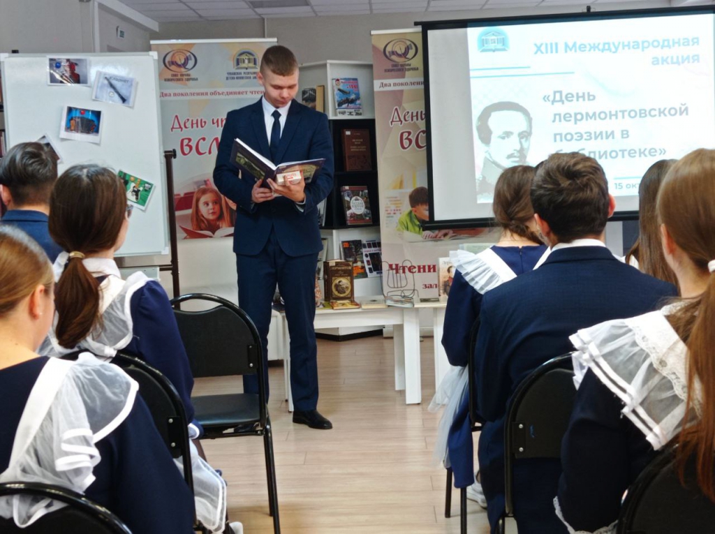 Чувашская республиканская детско-юношеская библиотека присоединилась к XIII Межрегиональной акции «Дни лермонтовской поэзии в библиотеке». В рамках масштабного культурного события была организована просветительская акция «Читаем Лермонтова», собравшая обучающихся 10 класса школы № 37 города Чебоксары.