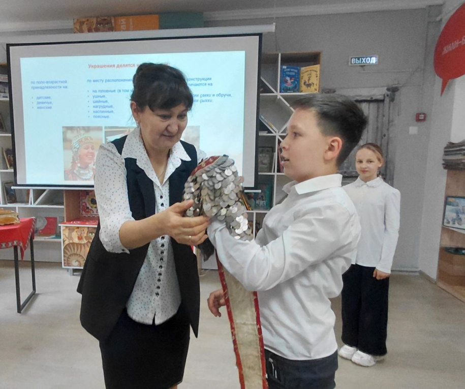 Специалист отдела краеведческой и национальной литературы Чувашской республиканской детско-юношеской библиотеки Татьяна Захарова провела очередное занятие клуба «Юный краевед» на тему «Ювелирное искусство чувашей». Его участниками стали обучающиеся 5 класса школы № 28 г. Чебоксары.