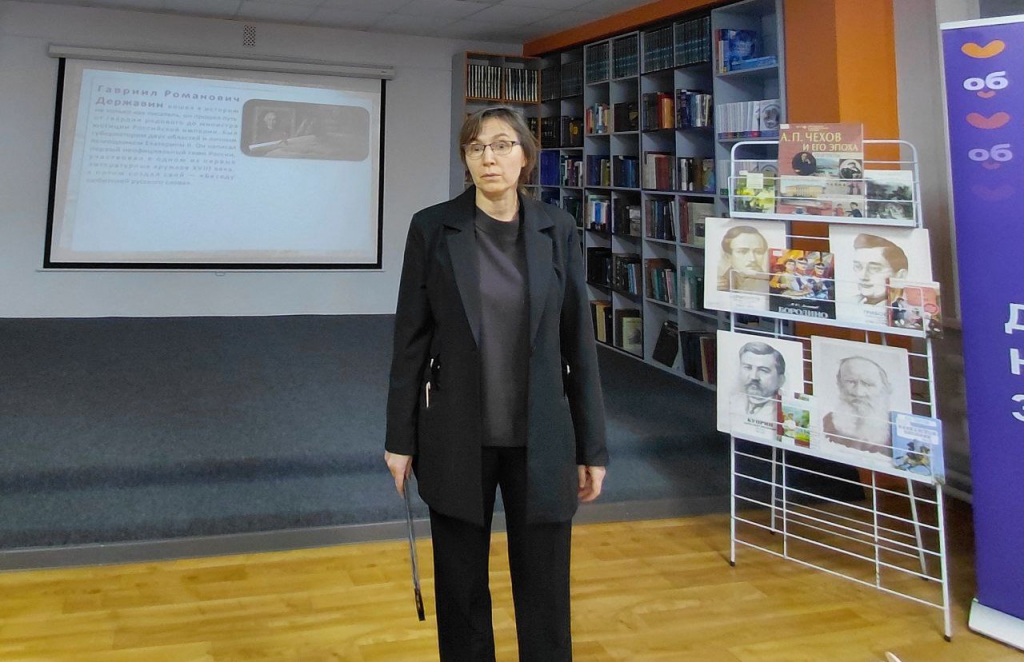 Посетители библиотеки узнали о том, что Державин оставил яркий след в истории России не только как писатель, но и как государственный деятель. Его карьера развивалась от гвардии рядового до министра юстиции Российской империи. Он управлял двумя губерниями и служил личным помощником императрицы Екатерины II. Гавриил Романович создал первый неофициальный гимн России, участвовал в деятельности одного из первых литературных кружков XVIII века и основал собственное общество – «Беседа любителей русского слова».