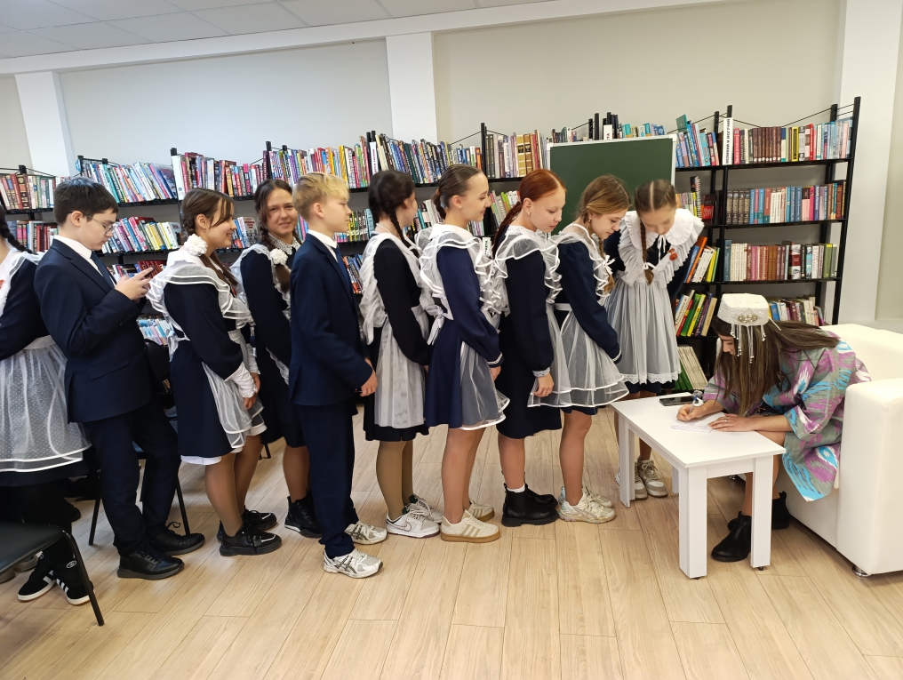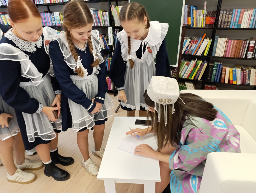 В завершение гостья провела мастер-класс по изучению узбекского языка, где ребята научились произносить и писать основные фразы. Встреча завершилась оживленной беседой, где Самира ответила на многочисленные вопросы и оставила на память автографы с пожеланиями успехов в учебе.