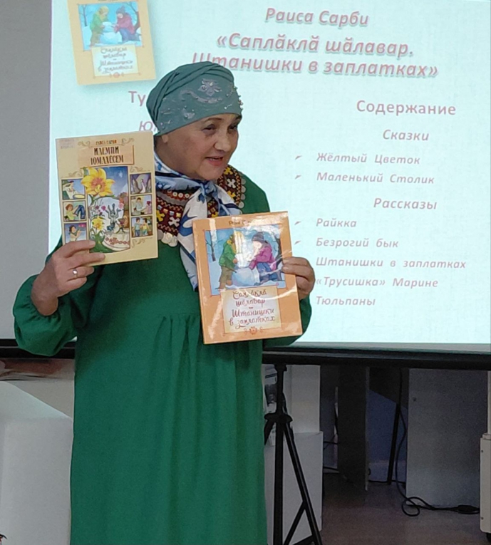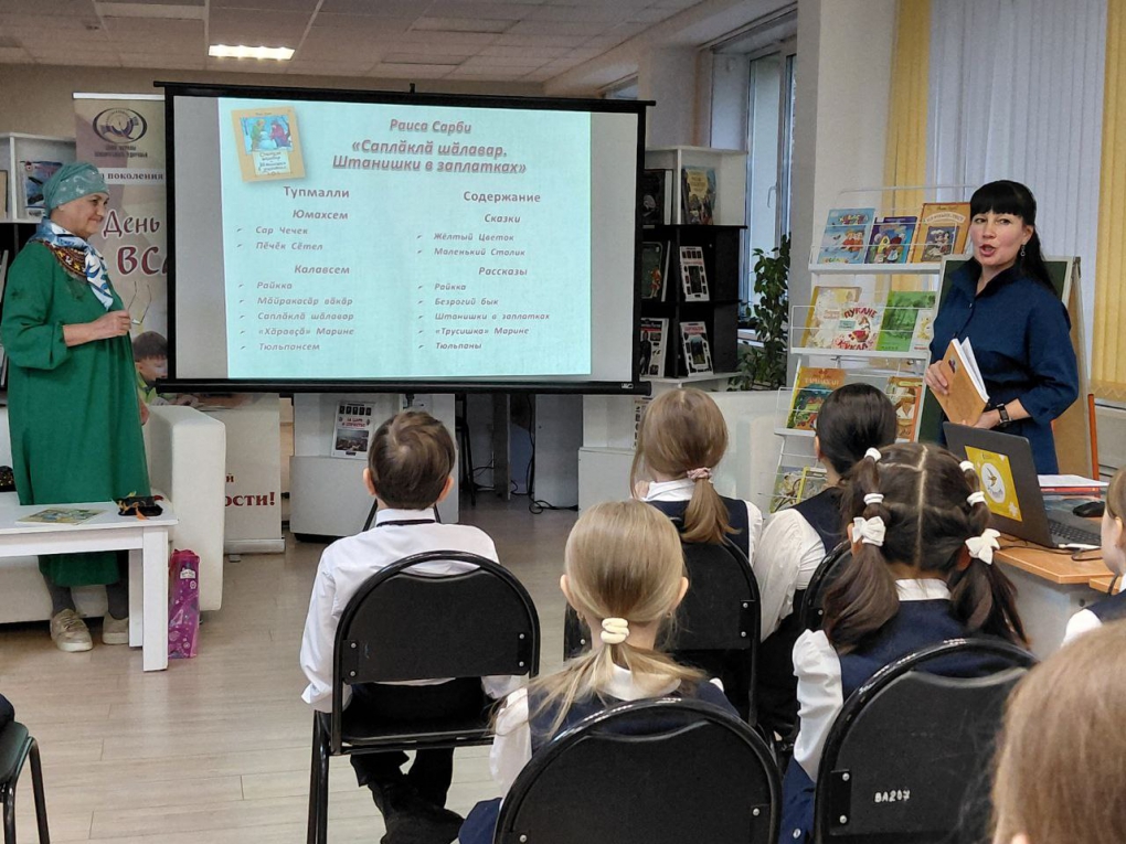 В Чувашской республиканской детско-юношеской библиотеке состоялась презентация новой книги народного поэта Чувашской Республики Раисы Сарпи — «Саплӑклӑ шӑлавар. Штанишки в заплатках». На встречу пришли ученики двух четвертых классов школы № 41 города Чебоксары.