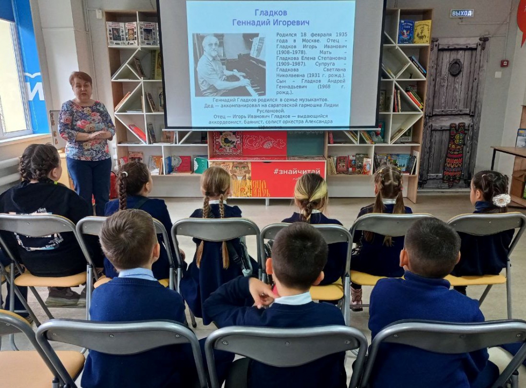 Второклассники совершили погружение в волшебный мир Геннадия Гладкова и узнали интересные факты о творчестве композитора, ставшего символом советского кинематографа, автора музыки к таким известным фильмам и мультфильмам, как «Бременские музыканты», «Голубой щенок», «Как Львенок и Черепаха пели песню», «По следам бременских музыкантов» и др.