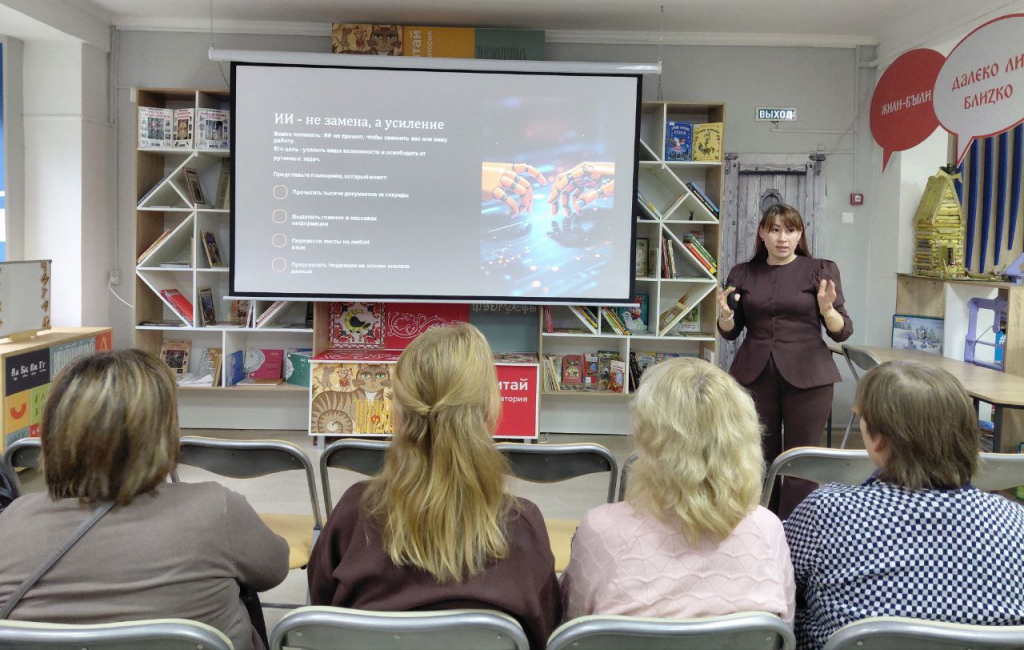 Вопросы использования информационных технологий в работе библиотекаря, безопасности в Интернете, цифровой среде раскрыла заведующий сектором культурных программ отдела обслуживания Наталья Степанова. Она последовательно осветила ключевые аспекты цифровизации библиотечной деятельности и подчеркнула, что сегодня библиотекарь должен обладать не только знанием аппаратного и программного обеспечения, но и уметь эффективно применять современные технологии. Например, искусственный интеллект поможет генерировать сценарии литературных игр, квестов, викторин и др. Это позволяет разнообразить форматы мероприятий и сделать их более интерактивными, удерживая внимание юной аудитории. При этом, отметила она, необходимо контролировать результат, сгенерированный сервисами искусственного интеллекта.