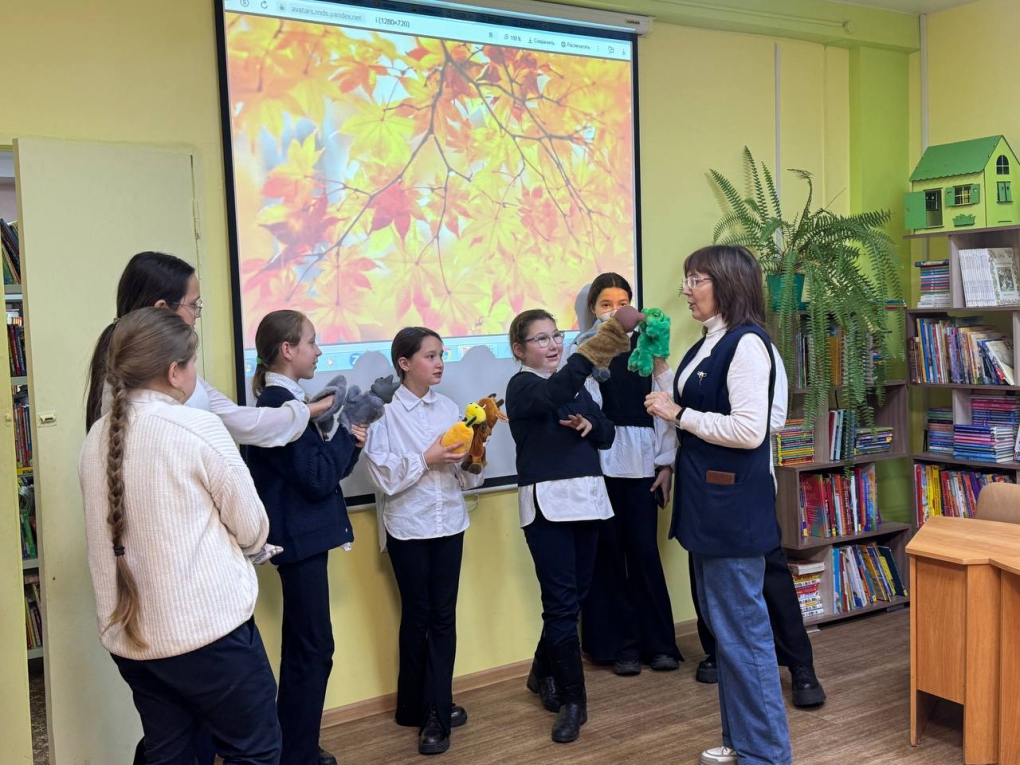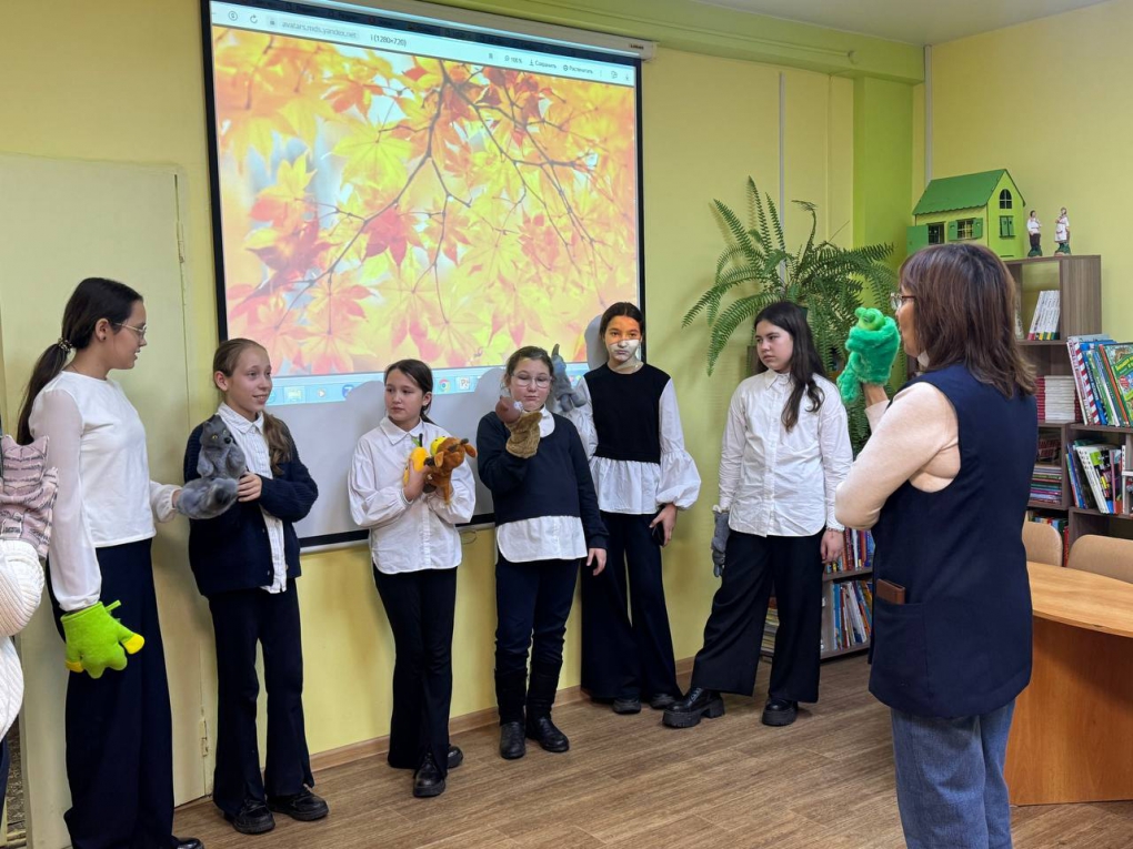 В отделе обслуживания детей дошкольного и младшего школьного возраста Чувашской республиканской детско-юношеской библиотеки обучающиеся 5-го класса чебоксарской школы №36 приняли участие в кукольном театрализованном представлении «Осенняя сказка» из цикла «Театр у книжной полки».