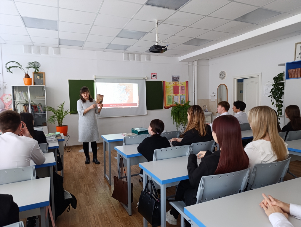 Для более глубокого погружения в тему библиотечный специалист продемонстрировала электронный ресурс «Оборонительные рубежи – трудовой подвиг народа Чувашии», размещённый на сайте библиотеки. Кроме того, вниманию старшеклассников были представлены книги: «В тылу как на фронте» Фёдора Козлова, «Чувашия древняя и вечно молодая» (авторы‑составители – Евгений Касимов, Сергей Кодыбайкин, Фёдор Козлов) и «Подвиг тружеников Чувашии: строительство Сурского и Казанского оборонительных рубежей» (авторы – Олег Андреев, Евгений Касимов, Фёдор Козлов, Марина Широкова).
