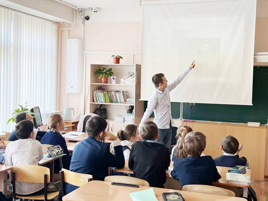 Главный библиотекарь Алексей Кузьмин рассказал школьникам о том, что электричество возникает из-за движения электронов между атомами. Оно может быть получено из природных источников, таких как солнце, вода и ветер, а также искусственных, таких как электростанции.