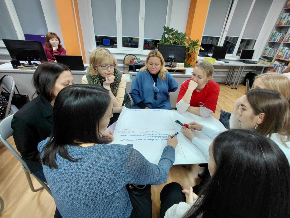На площадке Чувашской республиканской детско-юношеской библиотеки прошла стратегическая сессия «Принципы и методы развития первичного отделения через соавторство и поддержку инициативы участников: от теории к практике». В ней приняли участие председатели первичных отделений «Движения Первых» города Чебоксары, представляющие общеобразовательные организации.