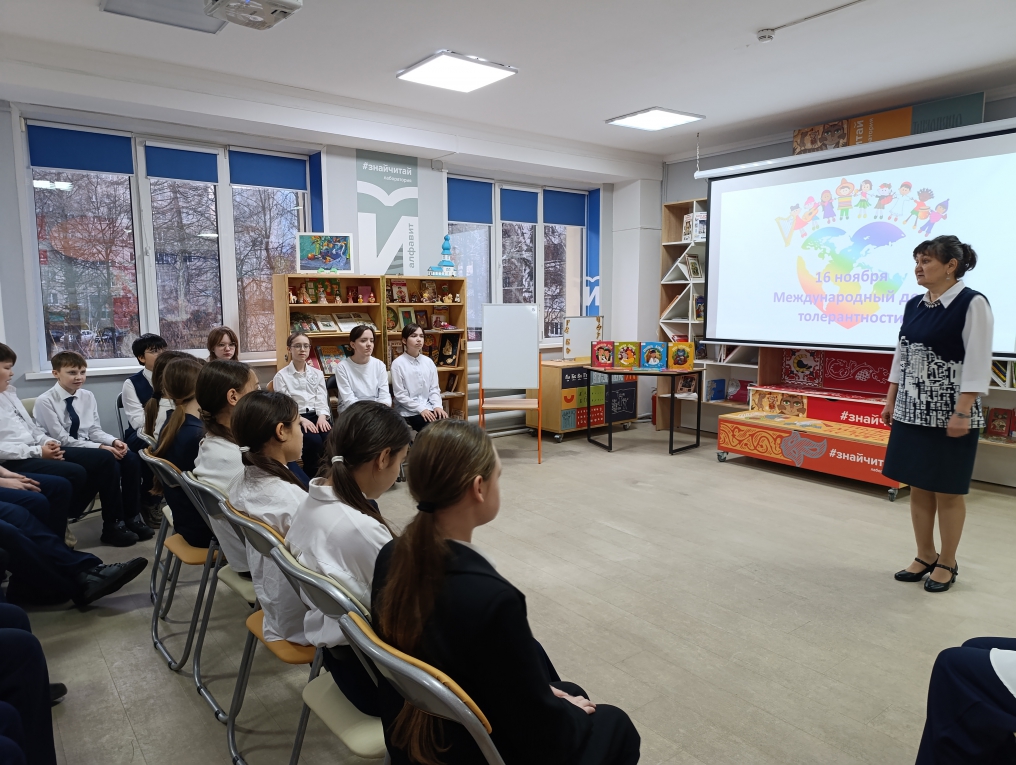 В преддверии Международного дня толерантности 14 ноября в отделе краеведческой и национальной литературы Чувашской республиканской детско-юношеской библиотеки состоялся детский праздник толерантности «В слове “мы“ – сто тысяч “я“». Участниками стали обучающиеся 6 класса средней общеобразовательной школы № 28 г. Чебоксары.