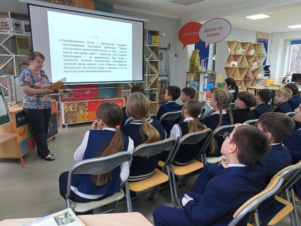 Программа встречи была насыщена интересными фактами и познавательными моментами. Школьники узнали о введении гражданского шрифта, развитии светского книгопечатания и других важных достижениях эпохи Петра Великого. Особое внимание было уделено вкладу первого императора в развитие отечественной литературы.