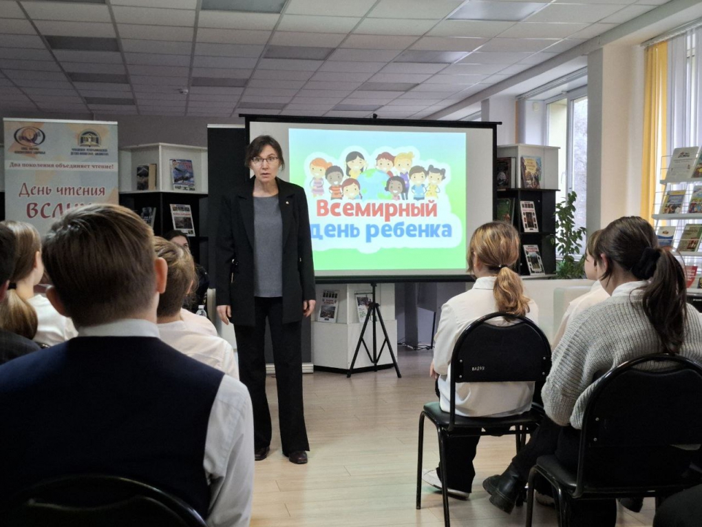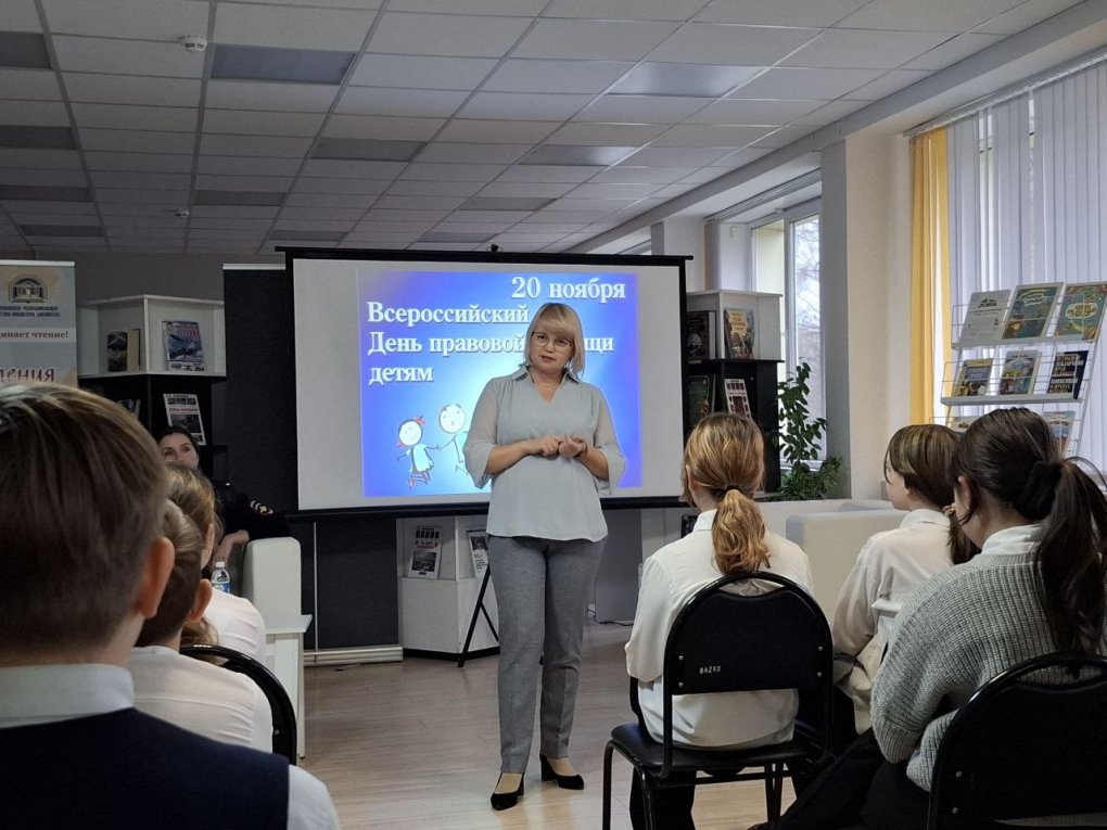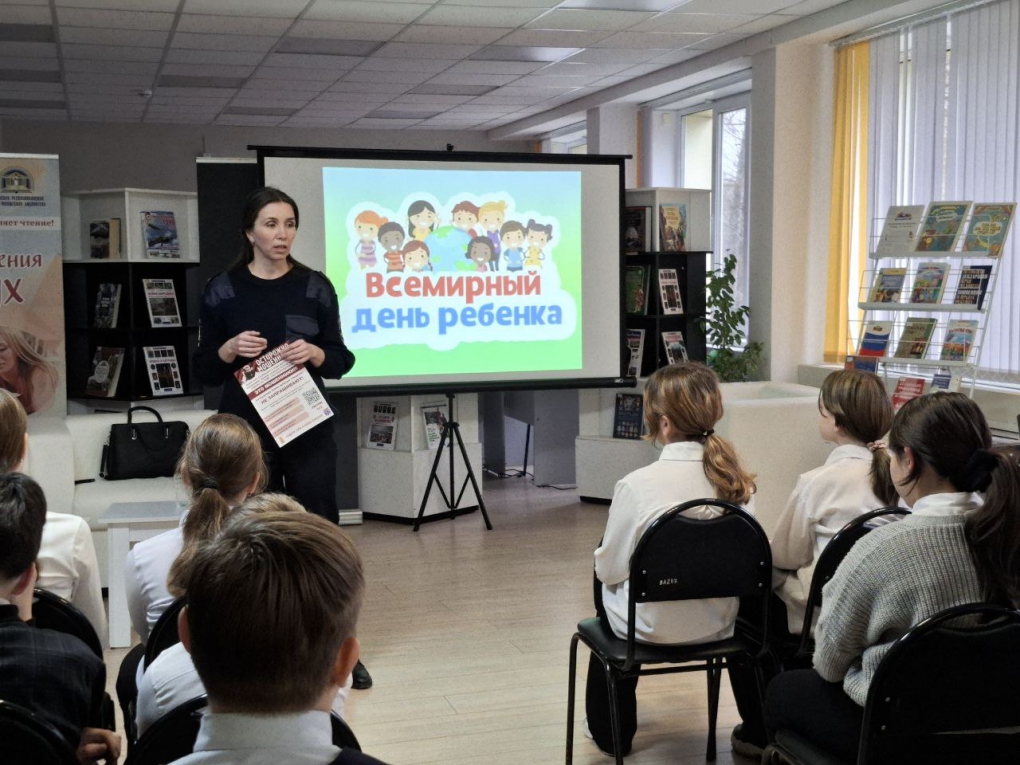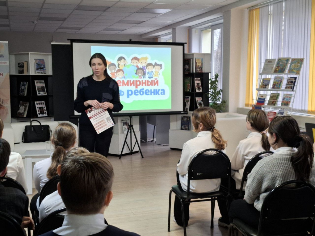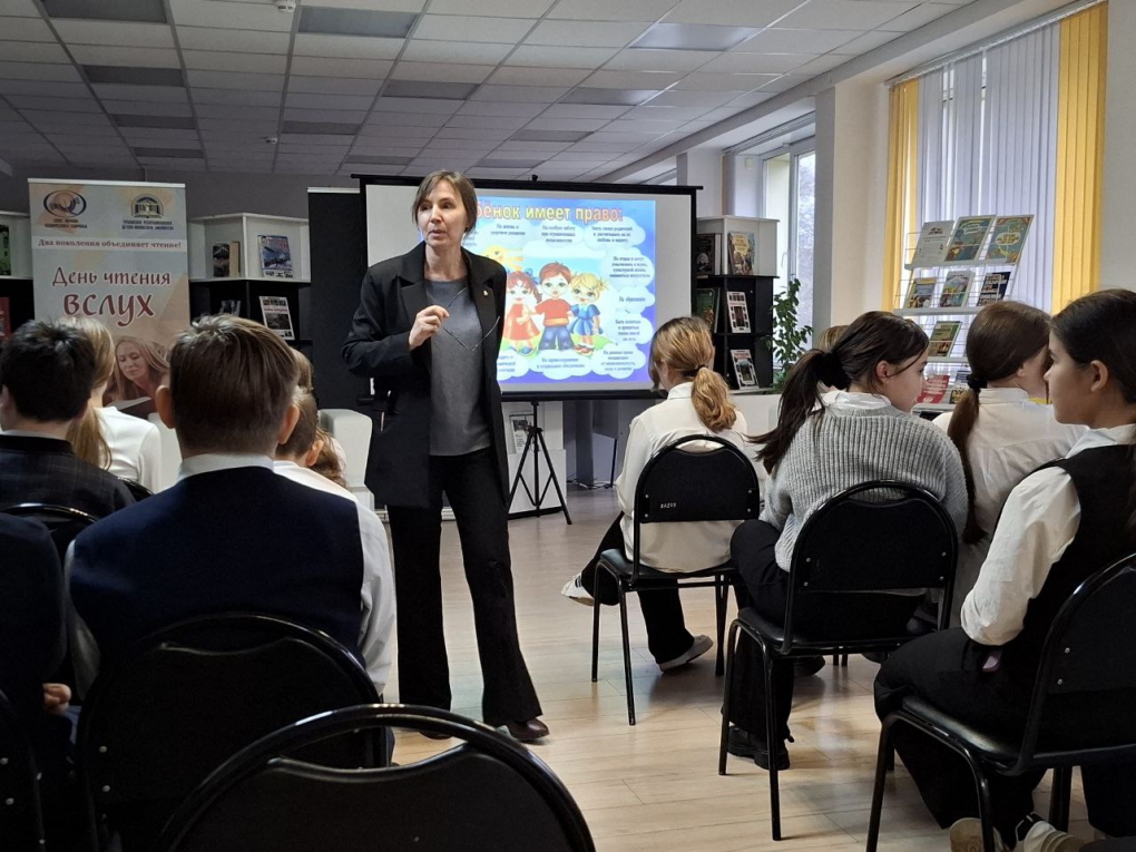 Заведующий отделом обслуживания Елена Ермолаева рассказала ребятам о Конвенции о правах ребенка. Предложила юным читателям перечислить права, которые они реализуют уже сейчас: право на имя, право на образование, право на гражданство, право свободно выражать свои взгляды, право на всестороннее развитие и уважение человеческого достоинства. Также побеседовала со школьниками о должном поведении человека и его обязанностях.