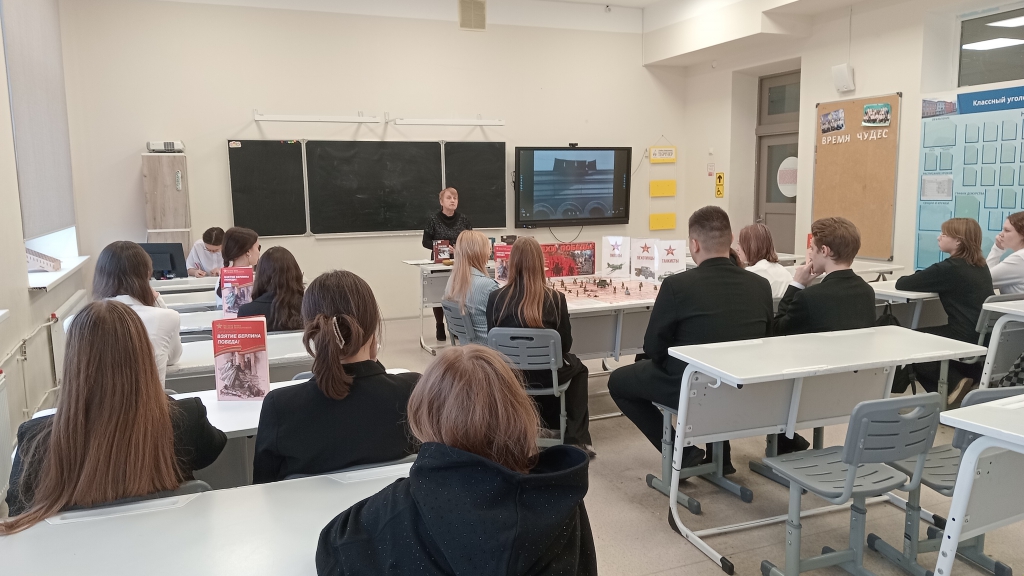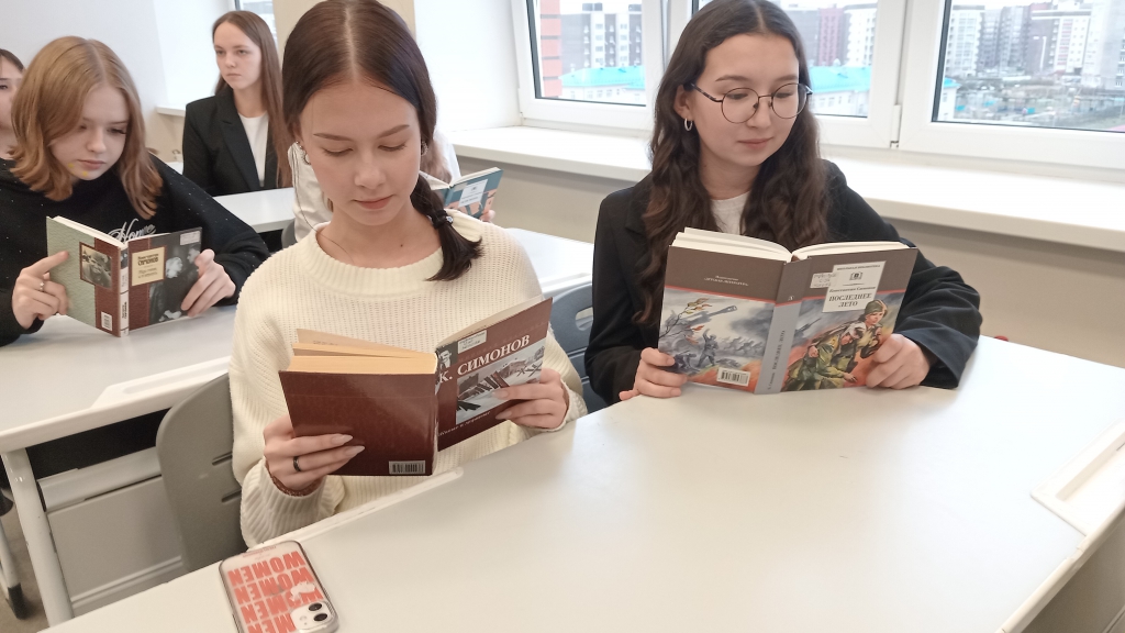 Специалисты отдела обслуживания Людмила Васильева и Ирина Иванова организовали литературную игру-реконструкцию «Дорогами Победы» на основе книги известного писателя, участника Великой Отечественной войны Сергея Алексеева «Взятие Берлина. Победа!». Игроки разбились на команды «Пехотинцы», «Пилоты» и «Танкисты» и, проявив находчивость, смекалку и эрудицию, успешно прошли все этапы игры. В продолжение школьники приняли участие в литературной композиции «И навсегда повенчанный с войной…», посвященной 110-летию со дня рождения Константина Симонова. Из рассказа библиотекаря ребята узнали о жизни и творчестве фронтового корреспондента, писателя, поэта, драматурга, а также ознакомились с известными произведениями автора: «Двадцать дней без войны», «Дни и ночи», «Живые и мертвые» и другими. Но наибольшую популярность ему принесла лирика военных лет. В газете «Правда» было опубликовано стихотворение «Жди меня», которое сразу же переписывали в свои блокноты тысячи фронтовиков. Комментированное чтение вслух отрывков из книг нашло отклик в сердцах участников и позволило прочувствовать атмосферу военных лет. Декламация сопровождалась просмотром фрагментов из художественных фильмов по произведениям автора о военном времени.