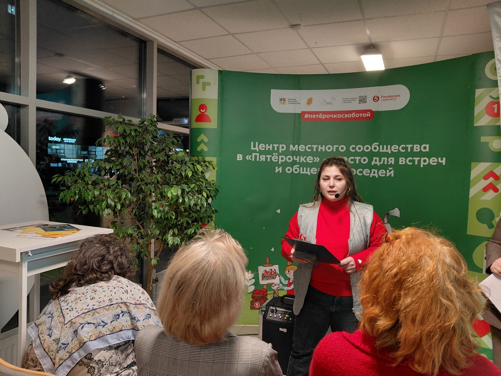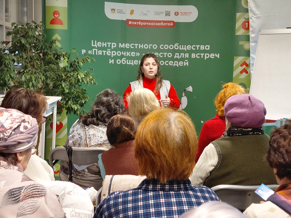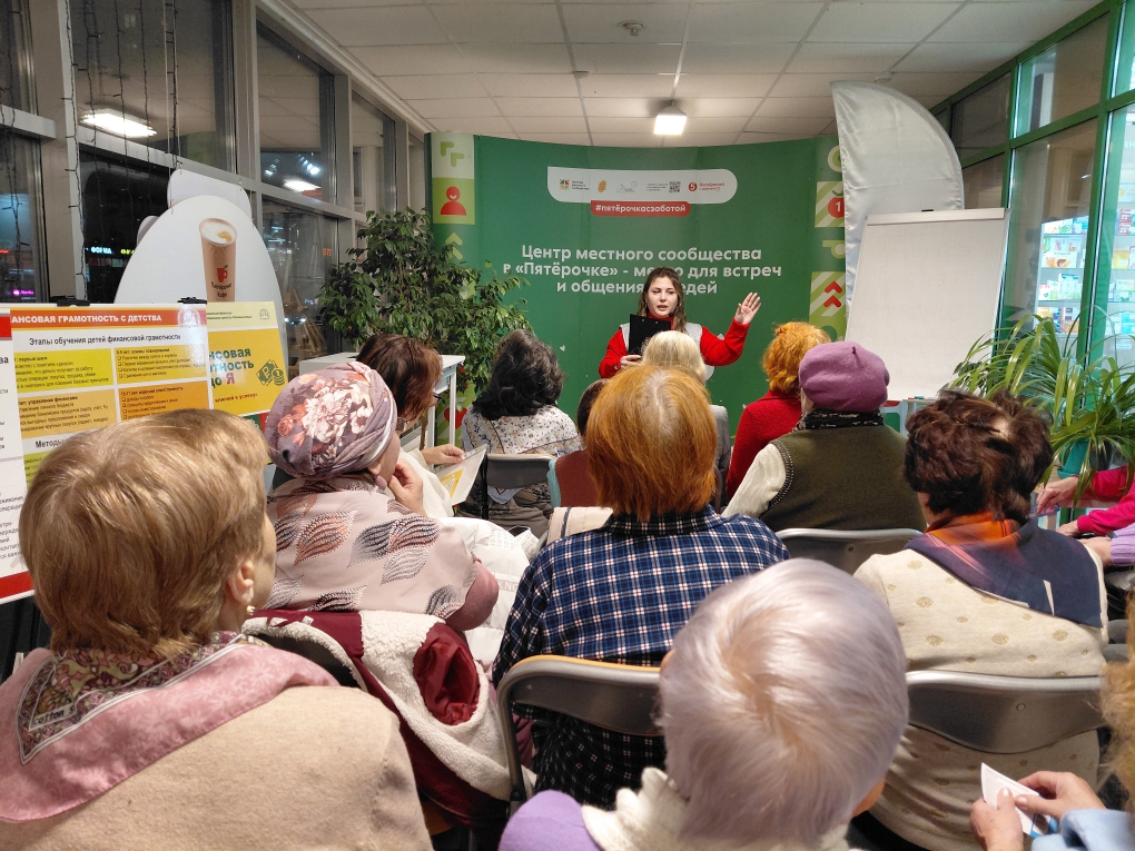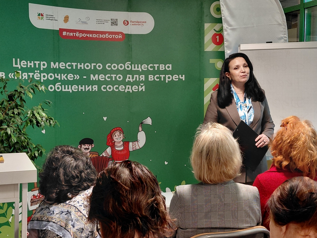 Затем главный партнер проекта – руководитель магазина «Пятерочка» Екатерина Тихоненко – приветливо встретила гостей. В качестве спикера лектория «Финпросвет» она поделилась секретами выгодных покупок и дала простые, но действенные советы, которые помогут покупки еще выгоднее. Екатерина Олеговна рекомендовала присоединиться к программе лояльности «Х5 Клуб», активно использовать мобильное приложение торговой сети, а также составлять список необходимых товаров перед походом в магазин и придерживаться его. Она призвала изучать еженедельные спецпредложения и акции, среди которых есть предложения, ориентированные на разные категории клиентов: пенсионеров, покупателей с детьми до 12 лет, владельцев домашних животных и других. В завершение своего выступления рассказала о том, как защитить права потребителей и вручила каждому карты «Х5 клуба», а также сервиса «Пакет». После лекции участники задавали дополнительные вопросы спикеру, получили обстоятельные ответы и выразили ему свою признательность. Было видно, что выступление произвело на них положительное впечатление и побудило задуматься о новых возможностях для выгодных покупок.