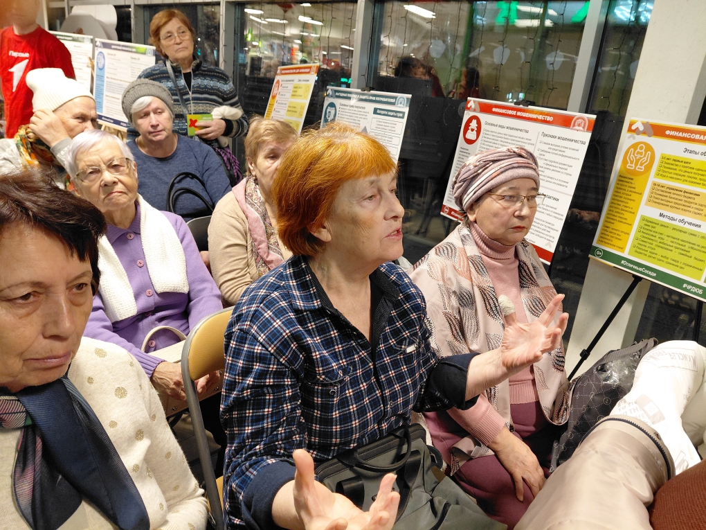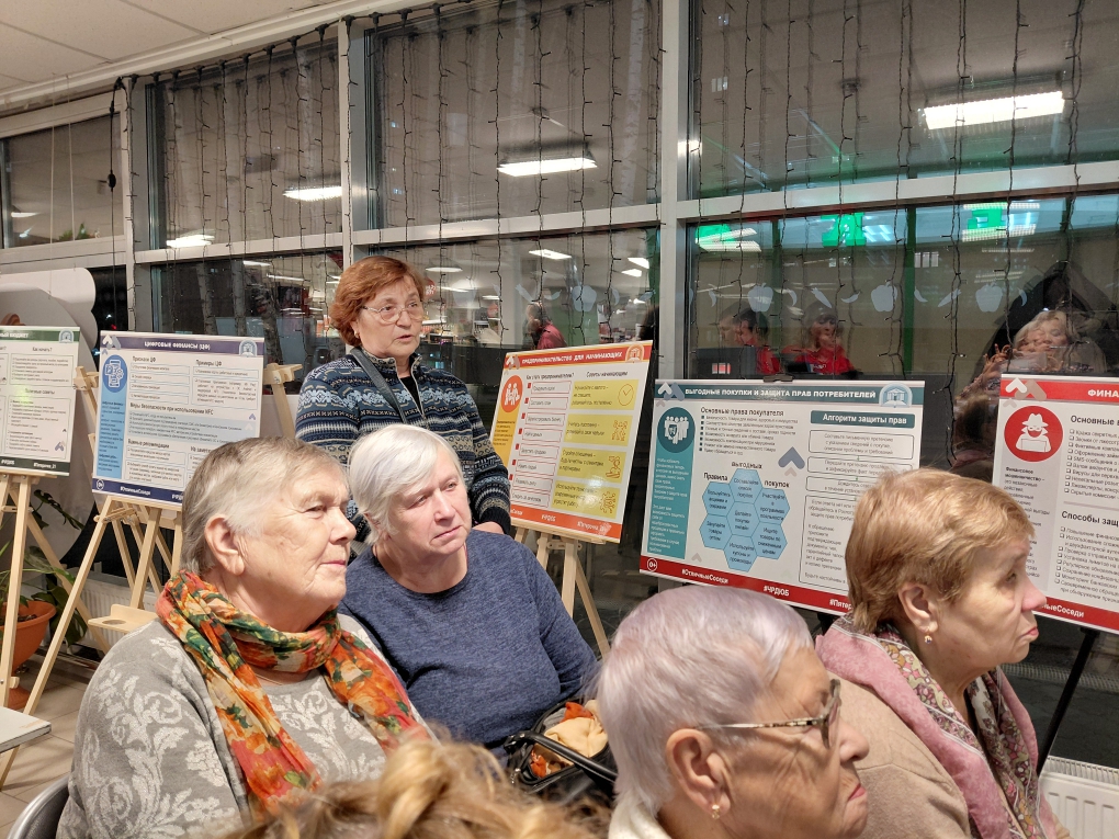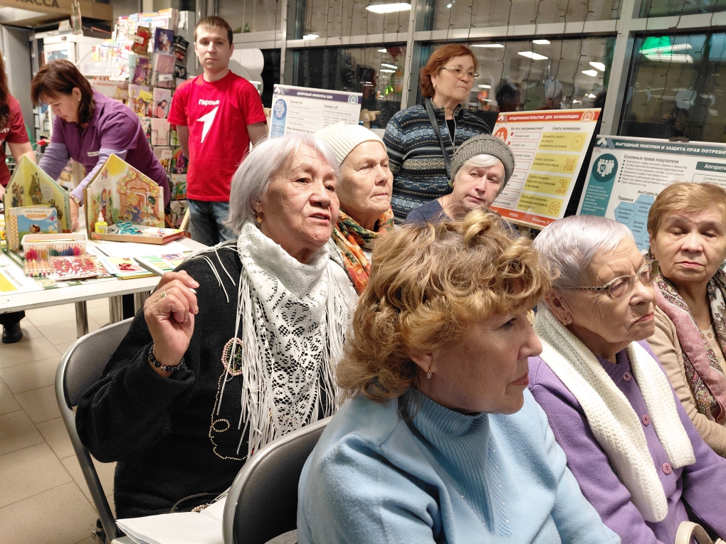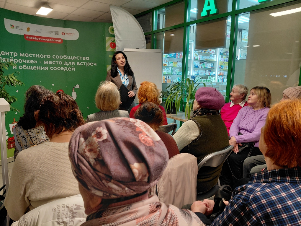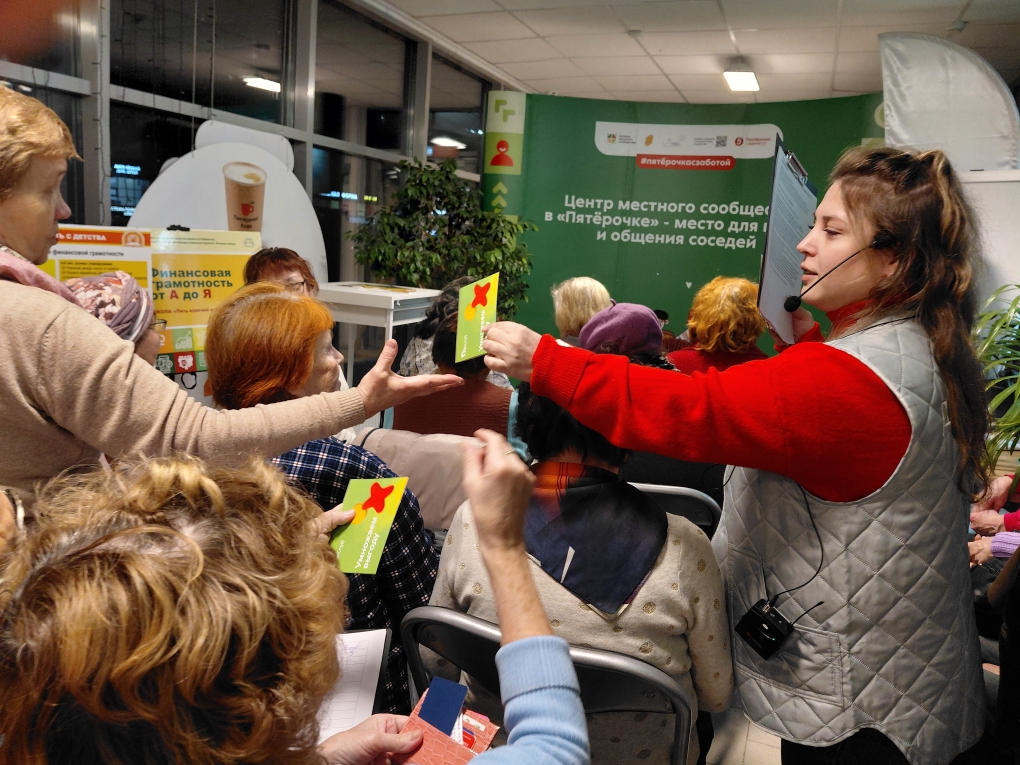 Затем главный партнер проекта – руководитель магазина «Пятерочка» Екатерина Тихоненко – приветливо встретила гостей. В качестве спикера лектория «Финпросвет» она поделилась секретами выгодных покупок и дала простые, но действенные советы, которые помогут покупки еще выгоднее. Екатерина Олеговна рекомендовала присоединиться к программе лояльности «Х5 Клуб», активно использовать мобильное приложение торговой сети, а также составлять список необходимых товаров перед походом в магазин и придерживаться его. Она призвала изучать еженедельные спецпредложения и акции, среди которых есть предложения, ориентированные на разные категории клиентов: пенсионеров, покупателей с детьми до 12 лет, владельцев домашних животных и других. В завершение своего выступления рассказала о том, как защитить права потребителей и вручила каждому карты «Х5 клуба», а также сервиса «Пакет». После лекции участники задавали дополнительные вопросы спикеру, получили обстоятельные ответы и выразили ему свою признательность. Было видно, что выступление произвело на них положительное впечатление и побудило задуматься о новых возможностях для выгодных покупок.