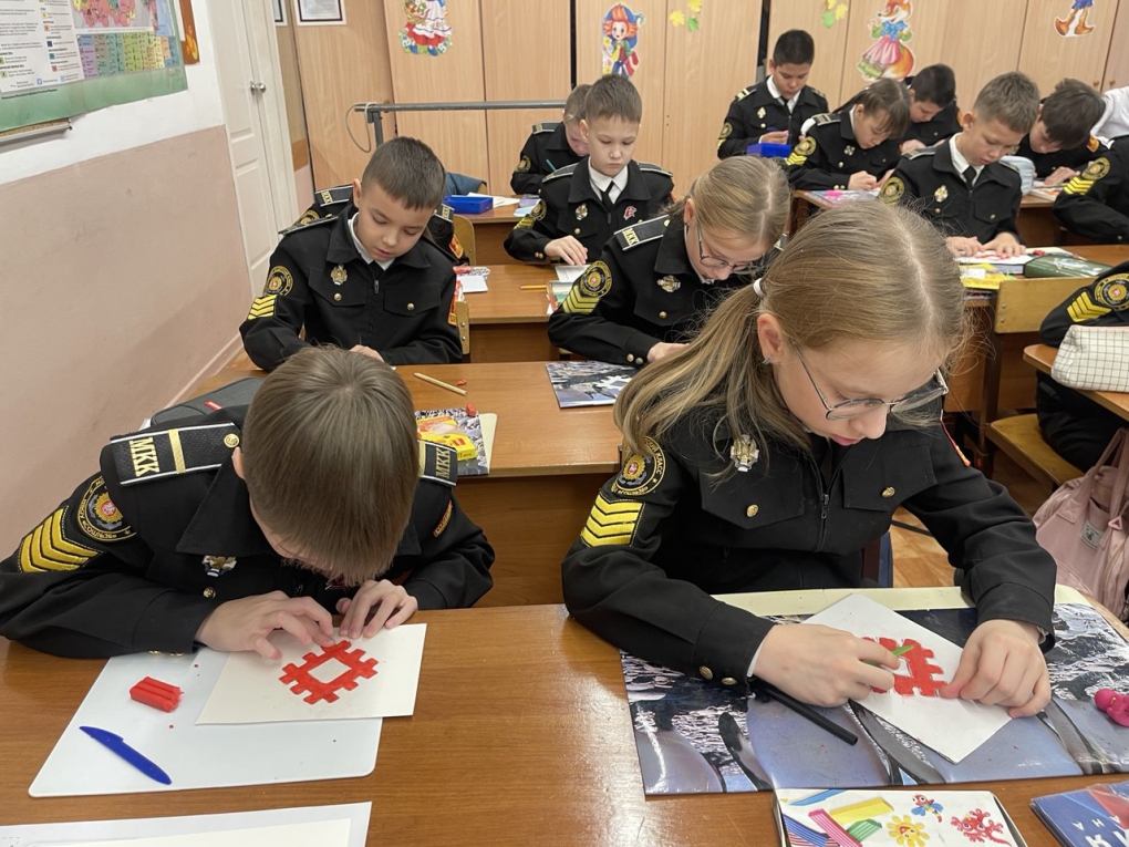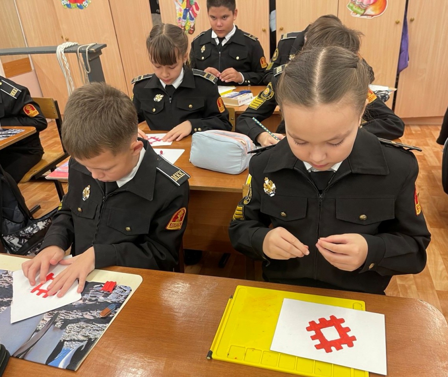 Практическая часть занятия включала мастер-класс по созданию чувашского узора в технике пластинографии. Ребята использовали специальные шаблоны с традиционными орнаментами и приступили к созданию образа Солнца. Сначала школьники нарисовали его на бумаге, используя готовые шаблоны с чувашским узором солнца, затем с помощью пластилина сформировали тонкие полоски и наложили их на рисунок. В результате у юных мастеров получился самобытный орнамент.