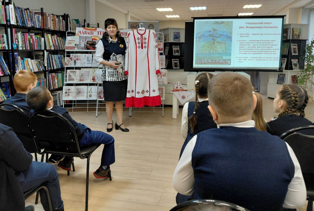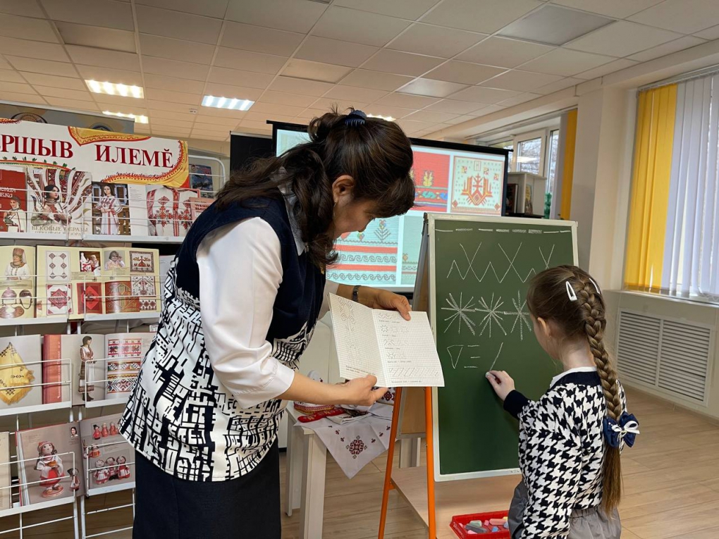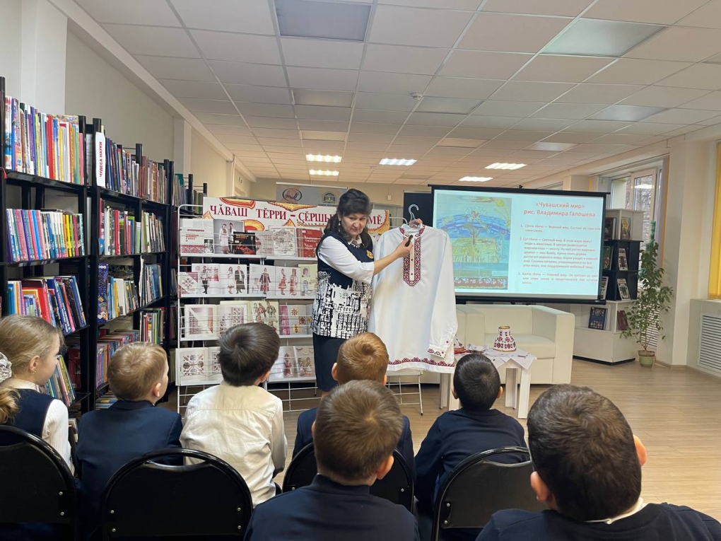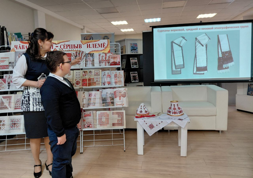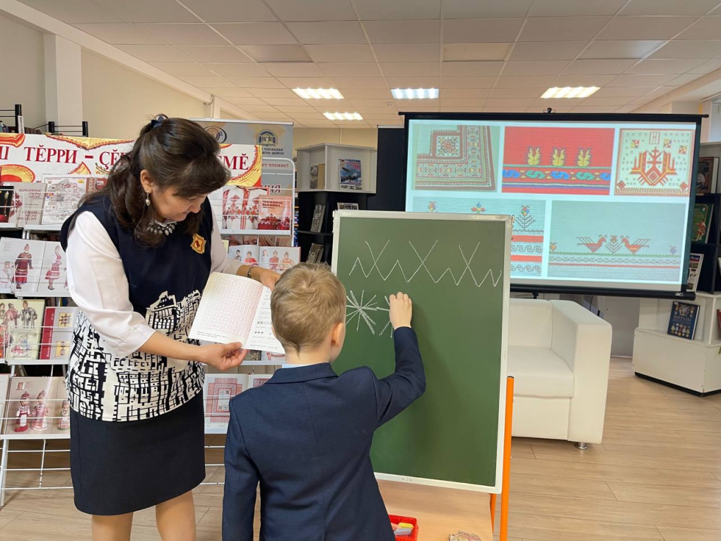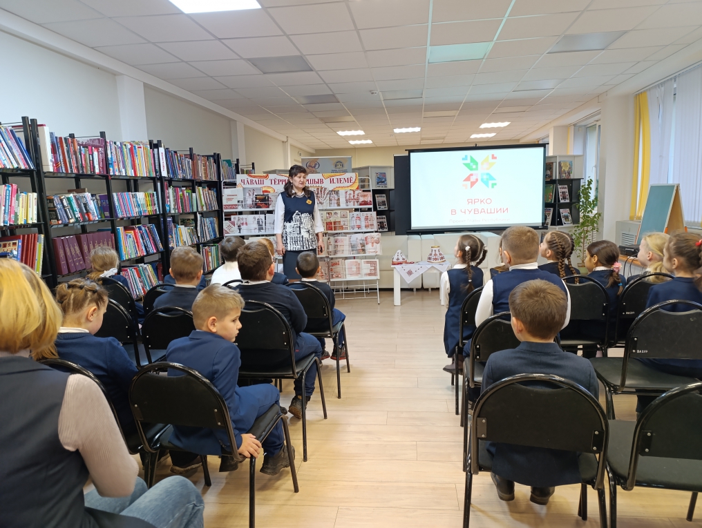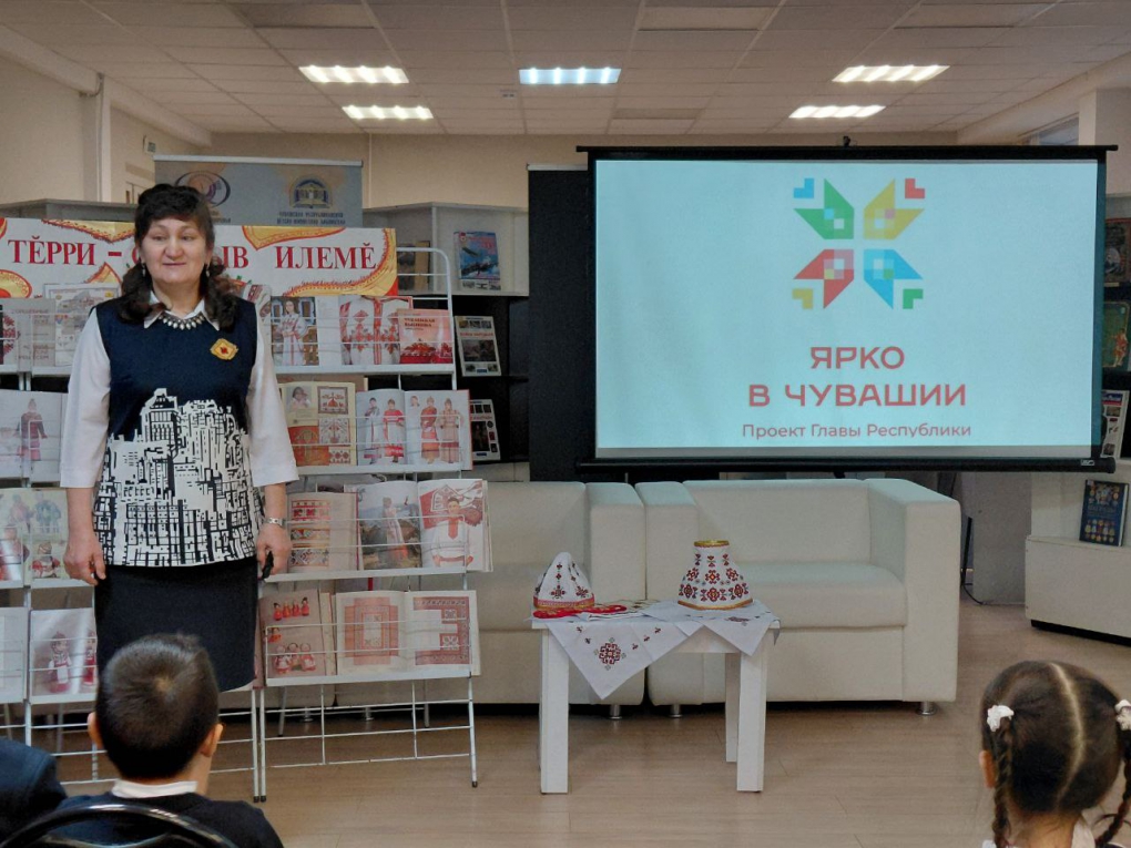В рамках проекта Главы Республики «Ярко в Чувашии» 25 ноября специалист отдела краеведческой и национальной литературы Чувашской республиканской детско-юношеской библиотеки Татьяна Захарова провела очередное занятие клуба «Юный краевед» на тему «Чувашская вышивка – мудрость народа». Его участниками стали обучающиеся 2 класса школы №36 г. Чебоксары.