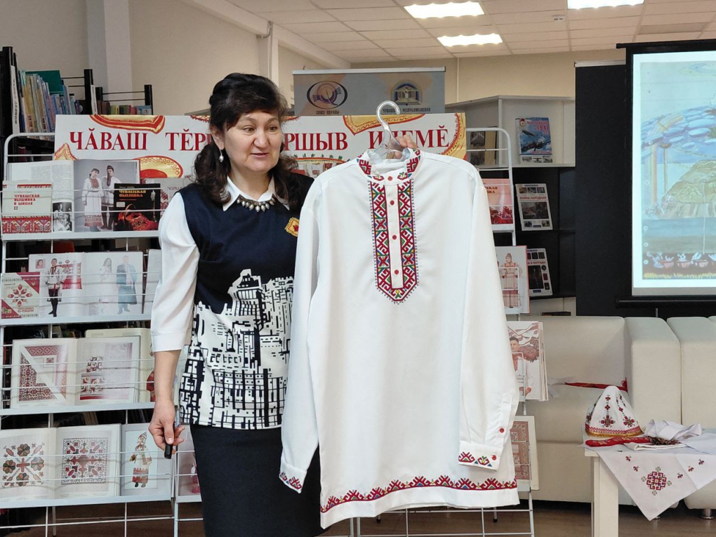 Национальная вышивка Чувашии, славящимся своей красотой, является одним из самых узнаваемых символов региона. Специалист отдела Татьяна Захарова напомнила школьникам о Дне чувашской вышивки, который ежегодно отмечается 26 ноября с 2020 года. Она подчеркнула, что национальная вышивка – это не просто искусство, а часть культуры с глубокими корнями, которая сопровождала человека на протяжении всей жизни, выполняя роль оберега, и украшала повседневную жизнь и праздники. Чуваши высоко ценили рукоделие, полагая, что умелая мастерица обязательно будет и хорошей хозяйкой, и трудолюбивой работницей.