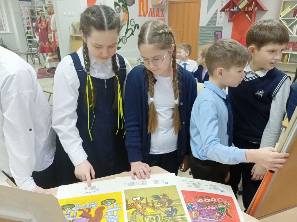 Участники встречи ознакомились с примерами книжных иллюстраций, где каждый персонаж наделен выразительным характером, бытовые детали создают ощущение настоящей русской избы, а сочные, праздничные цвета словно взяты из народных гуляний. Композиция выстраивается как игровая сцена, приглашая ребенка стать ее непосредственным участником.