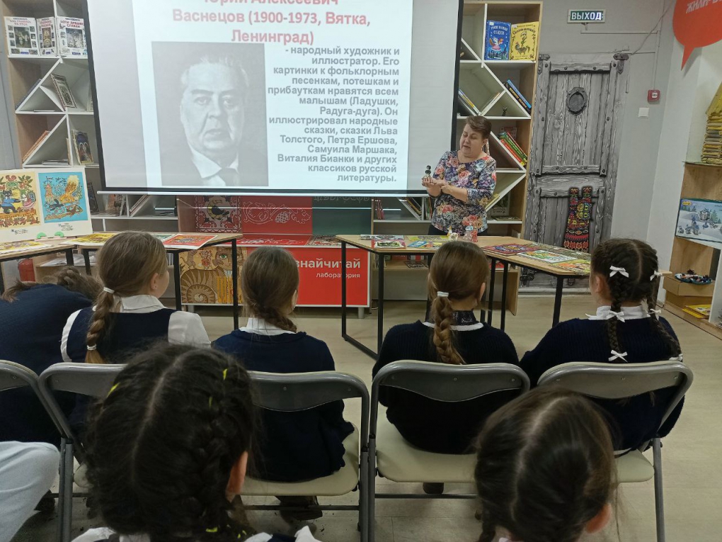 Особое внимание в ходе встречи было уделено творчеству художников Юрия Алексеевича и Елизаветы Юрьевны Васнецовых – мастеров, чьи иллюстрации стали эталоном для русского фольклора. Их работы не просто дополняют текст, а оживляют его, превращая чтение в настоящее путешествие в мир народной сказки.