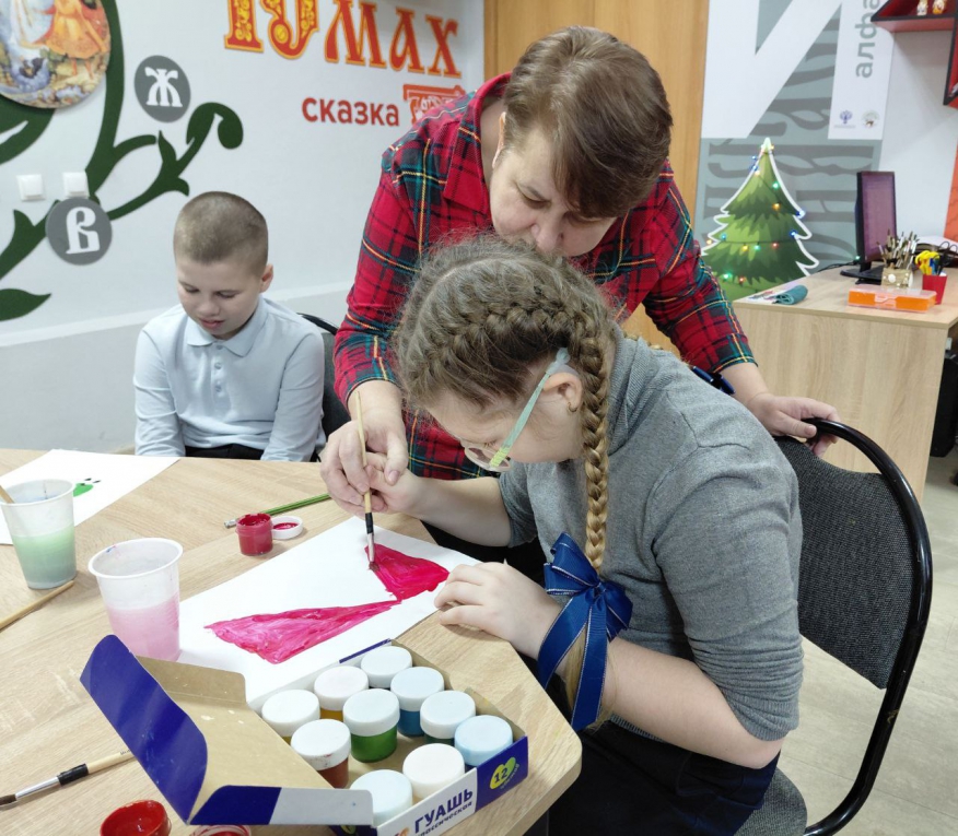 Специалист Добро.Центра «Волонтеры культуры» библиотеки Татьяна Макарова в реабилитационном центре для детей и подростков с ограниченными возможностями здоровья г. Чебоксары провела творческий мастер-класс «Мастерим подарок сами». Во время занятия дети освоили базовые приемы рукоделия и под руководством библиотекаря изготовили авторские новогодние открытки. Все необходимые материалы для творчества были заранее подготовлены: цветная бумага, карандаши и специальные макеты в форме новогоднего мишки. Дети увлеченно вырезали и клеили детали, создавая уникальные изделия. Несмотря на единый шаблон, каждый участник получил собственного медведя – белого или бурого, неизменно сжимающего в лапах елочку с добрыми пожеланиями. Мастер-класс стал прекрасной возможностью развить мелкую моторику и художественное мастерство, создать радостную и вдохновляющую обстановку. Он показал, насколько важно творческое взаимодействие для раскрытия способностей детей с особыми потребностями, укрепления уверенности в себе и наслаждения процессом творчества в инклюзивной среде.