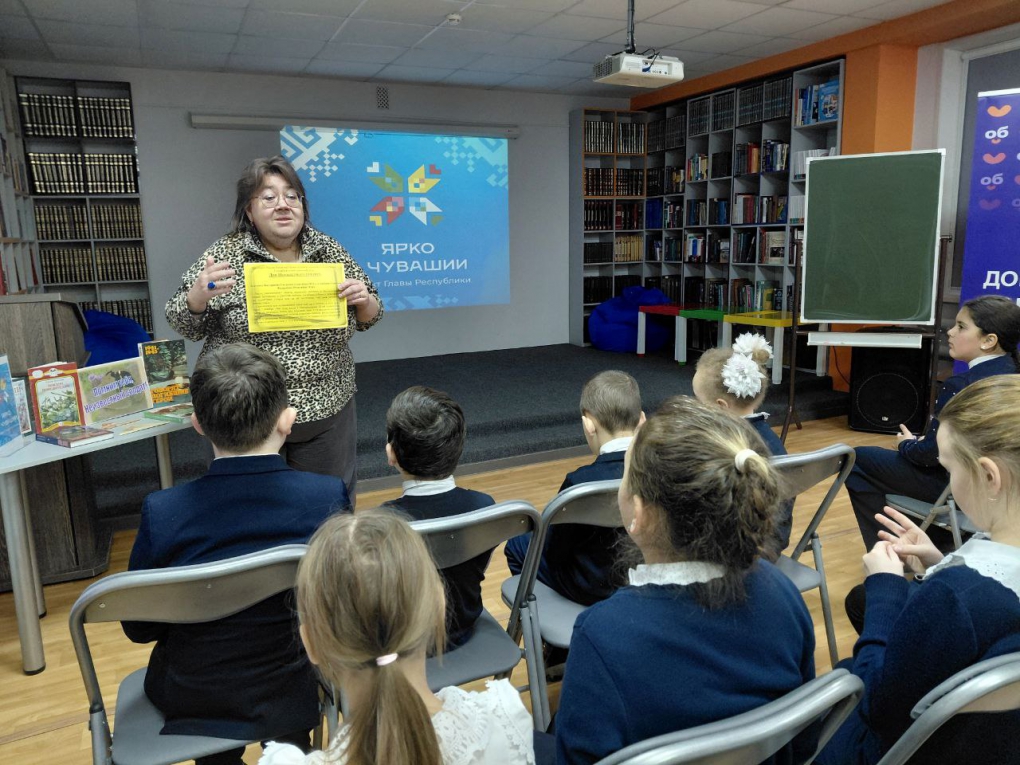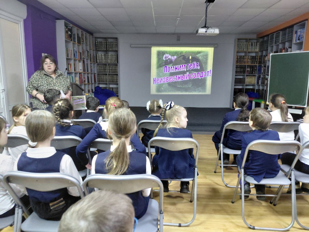 Специалисты информационно-библиографического отдела Чувашской республиканской детско-юношеской библиотеки пригласили обучающихся третьего класса средней школы № 36 г. Чебоксары на урок мужества «Судьба Неизвестного Солдата», приуроченного ко Дню Неизвестного Солдата. Он состоялся в рамках проекта Главы Республики «Ярко в Чувашии».