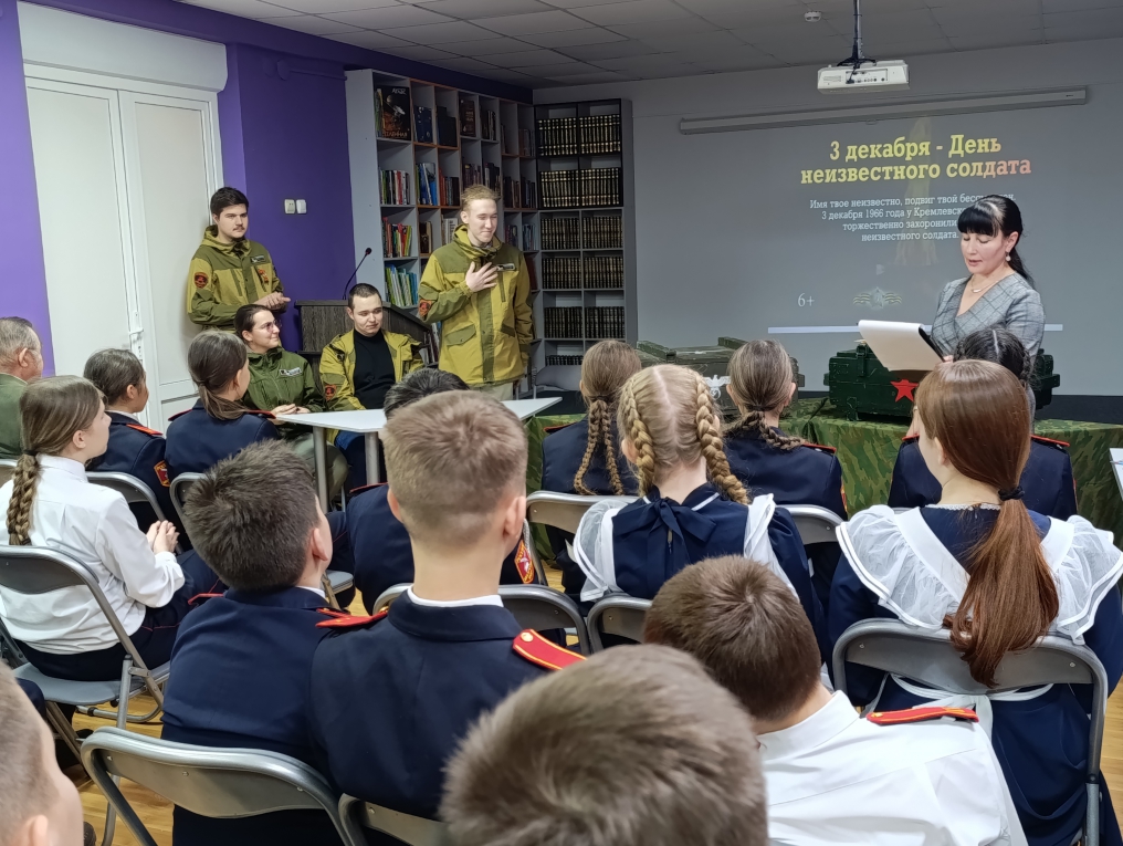В День Неизвестного солдата – 3 декабря – в Чувашской республиканской детско-юношеской библиотеке состоялась встреча «Спасибо тебе, безымянный солдат!» с членами поисковых отрядов «Георгиевская лента» Чувашского государственного университета им. И.Н. Ульянова и «Обелиск» школы №37 г. Чебоксары.