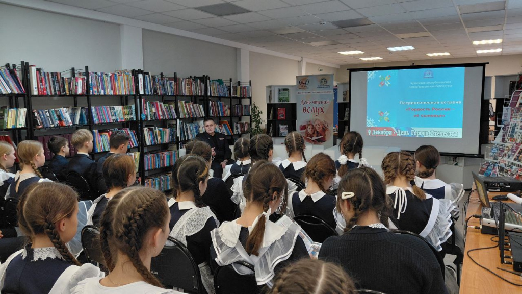Волонтерами Добро.Центра “Волонтеры культуры” в Чувашской республиканской детско‑юношеской библиотеке была проведена патриотическая встреча «Гордость России – ее сыновья», приуроченная ко Дню Героев Отечества. Она организована в рамках проекта Главы Республики «Ярко в Чувашии», нацеленного на духовно‑нравственное и патриотическое воспитание молодежи.