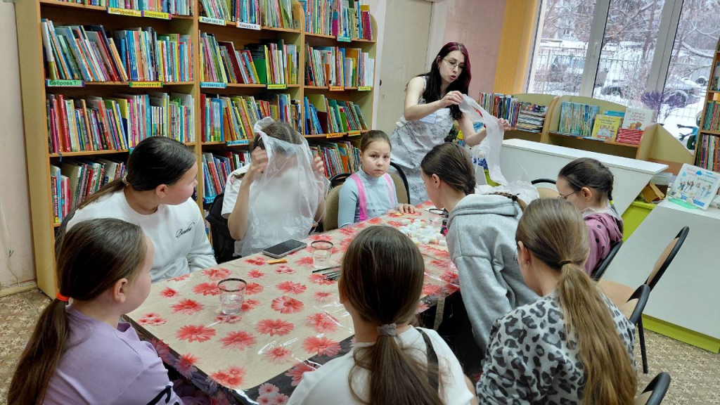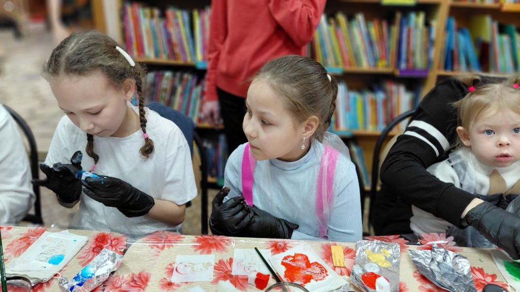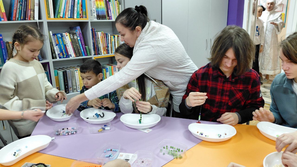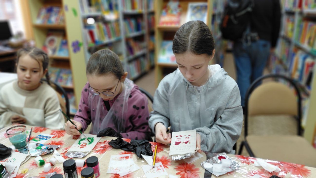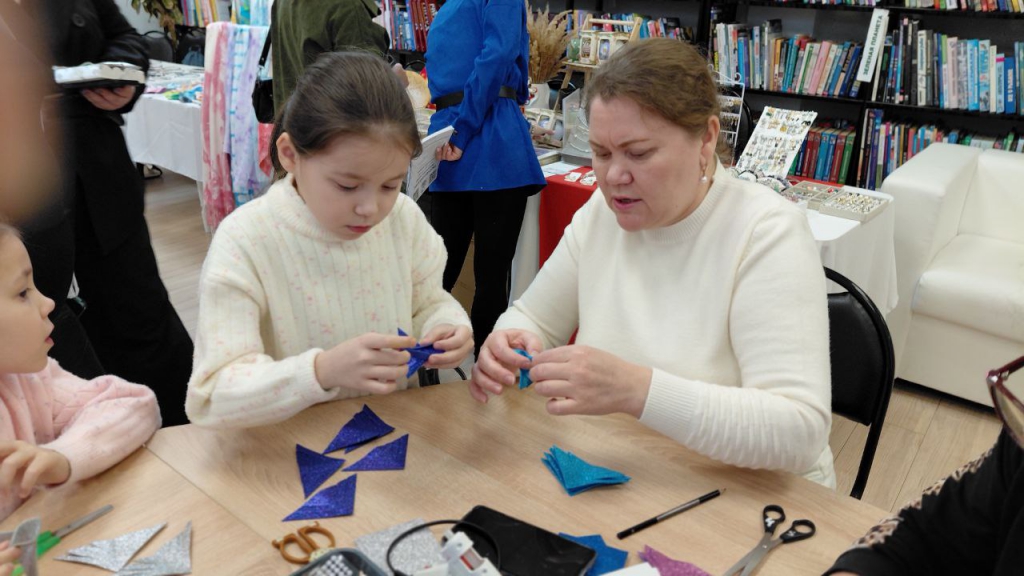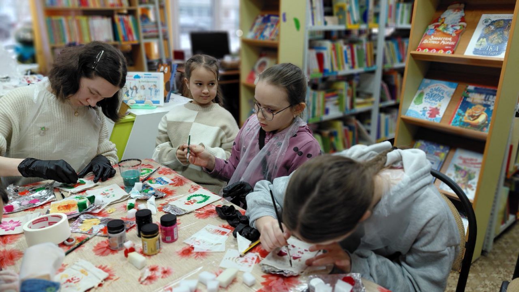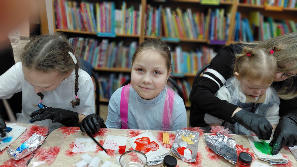 Центральной частью программы стали разнообразные мастер‑классы, которые проходили одновременно в разных зонах библиотеки. Гости всех возрастов с увлечением осваивали новые ремесла.