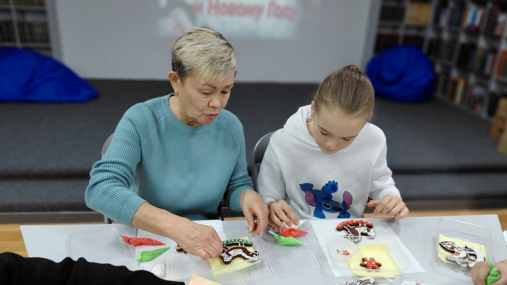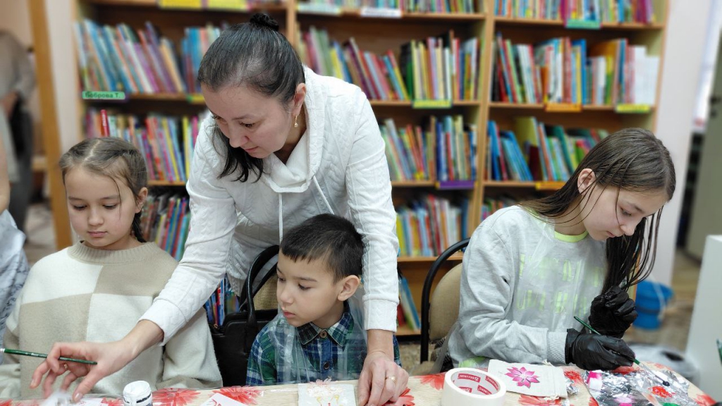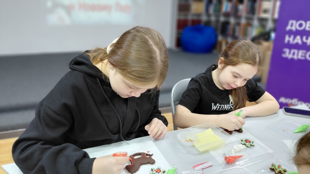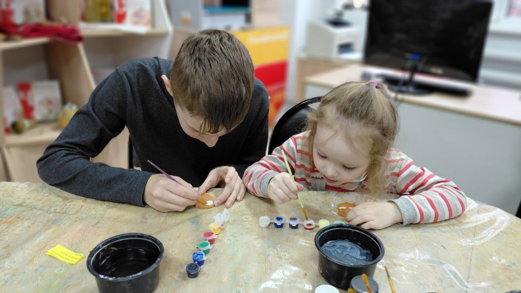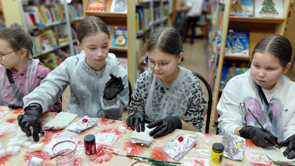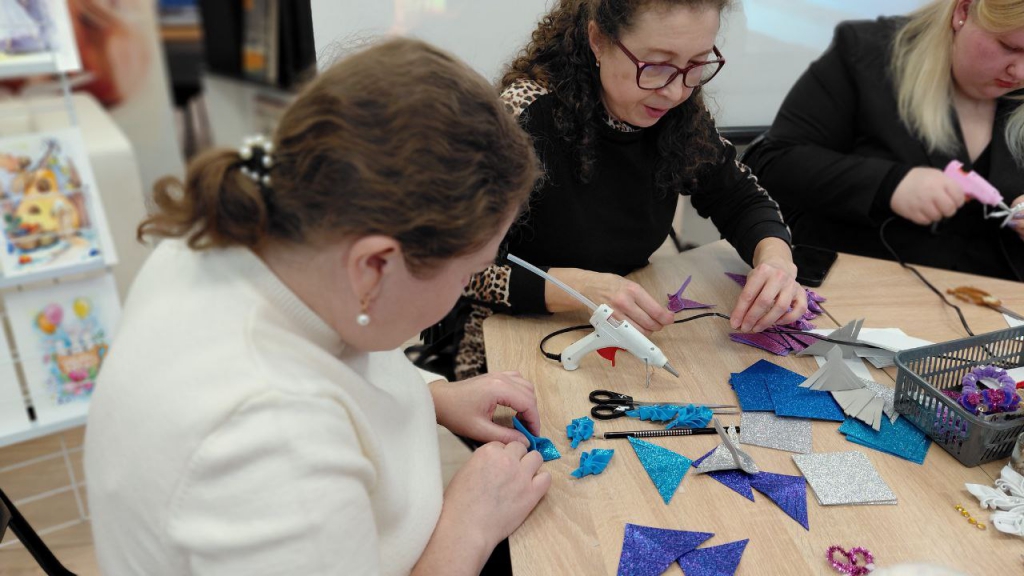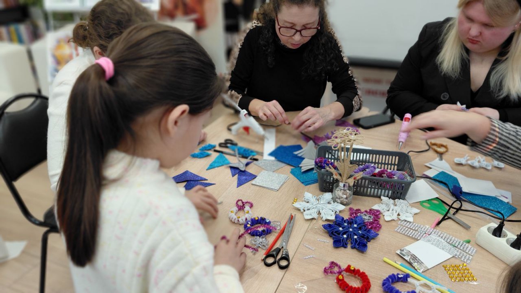 Центральной частью программы стали разнообразные мастер‑классы, которые проходили одновременно в разных зонах библиотеки. Гости всех возрастов с увлечением осваивали новые ремесла.
