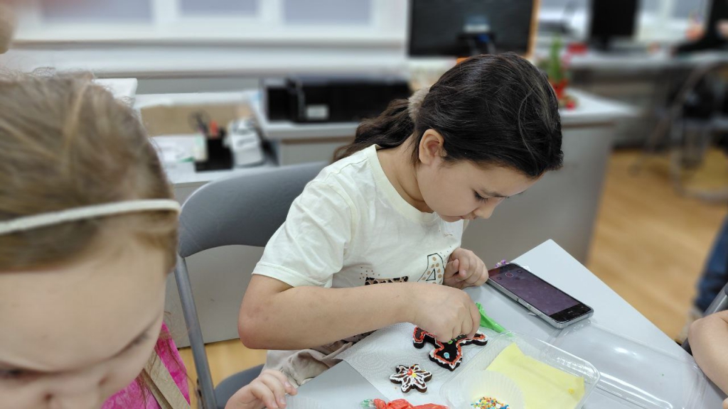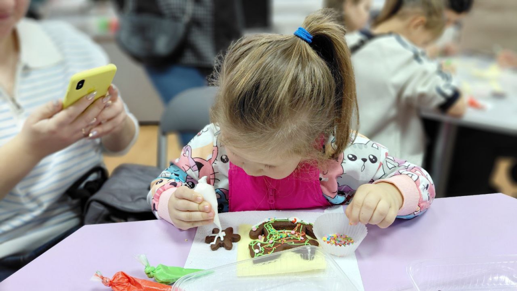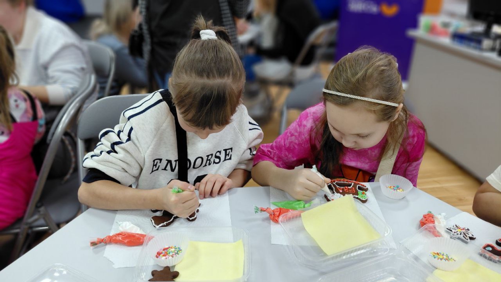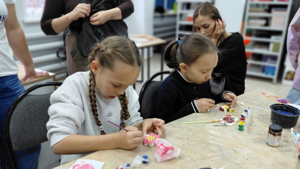 Творческая студия «Сенсорика» приглашала гостей погрузиться в «Глиняные фантазии» – работу с глиной и создание гипсовых изделий. Наталия Петрова и Полина Васильева провели совместное занятие по росписи игрушек из соленого теста, которое особенно полюбилось семьям с детьми. Светлана Гордеева учила создавать «Новогоднюю открытку с душой». Ирина Сидорова вела мастер‑класс «Очумелые ручки», где участники осваивали изготовление стильных чокеров.