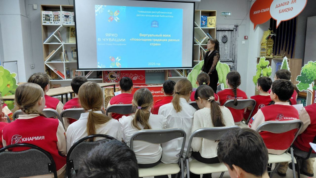 В Чувашской республиканской детско‑юношеской библиотеке развернулось настоящее интеллектуальное состязание. Для учащихся 5 класса школы № 19 г. Чебоксары организован увлекательный виртуальный вояж – игра в формате известной телевикторины, посвященная новогодним традициям разных народов мира. Занятие состоялось в рамках проекта Главы Республики «Ярко в Чувашии».