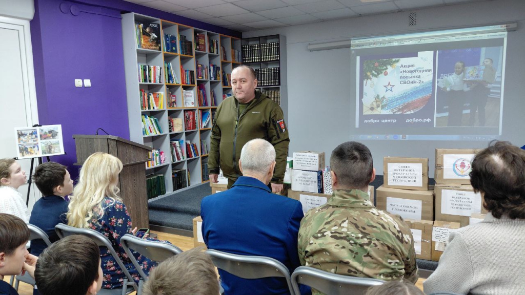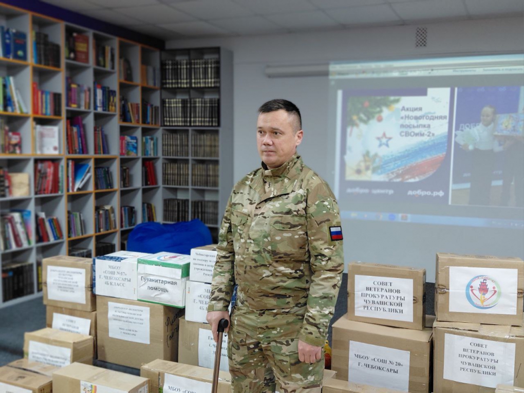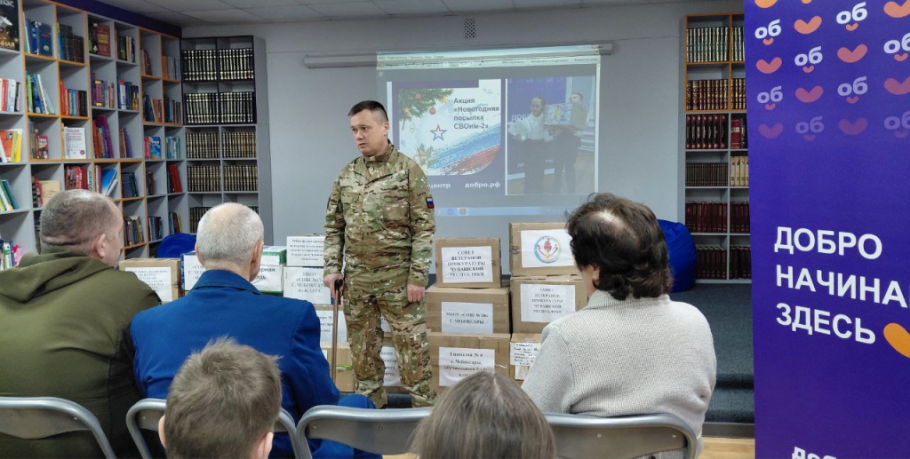 Ровно год назад, в преддверии Нового года, Добро.Центр «Волонтеры культуры» Чувашской республиканской детско-юношеской библиотеки, только начавший свою деятельность, совместно с Советом ветеранов прокуратуры Чувашской Республики, организовал трогательную акцию «Новогодняя посылка СВОим». Ее целью был сбор гуманитарной помощи для бойцов, участвующих в специальной военной операции. Эта инициатива была широко поддержана.