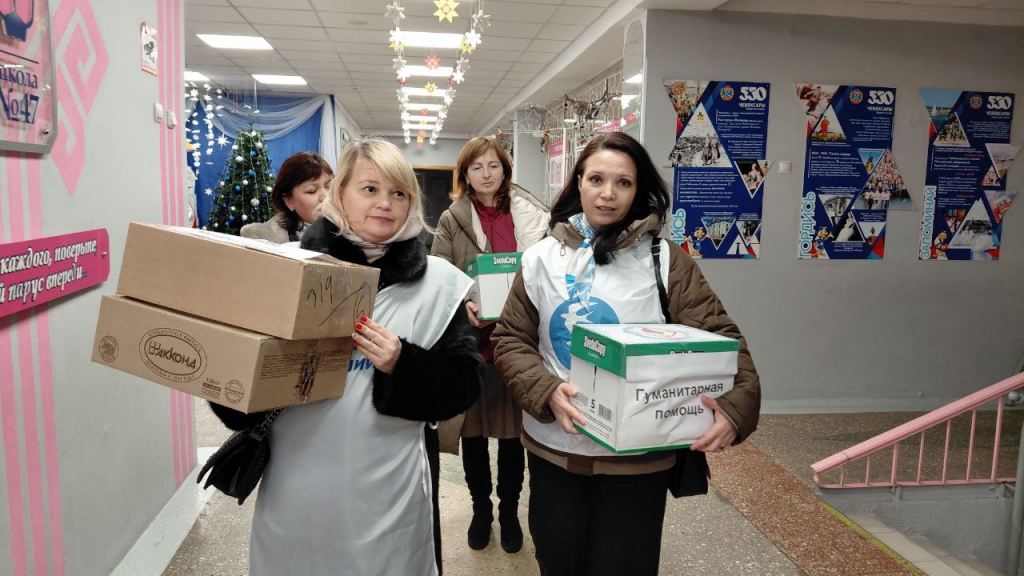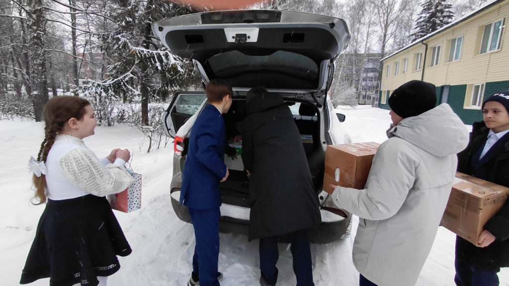 В очередной предновогодней акции к сбору, погрузке и отправке собранной благотворительной и гуманитарной помощи присоединились ученики школы № 20 города Чебоксары. В социокультурном событии участвовали почетные гости: председатель Совета ветеранов прокуратуры Чувашской Республики Анатолий Иванов, ветеран прокуратуры Чувашии Фаина Крылова и ветеран боевых действий Сергей Родионов.