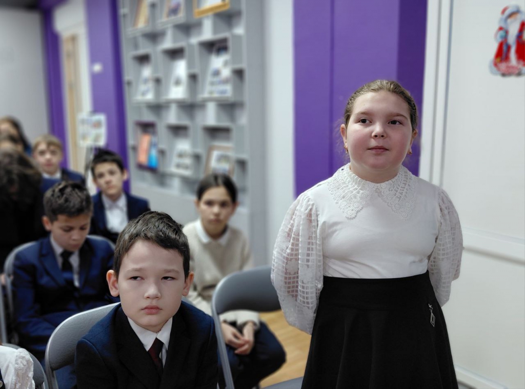 Фаина Крылова, обращаясь к школьникам, поделилась воспоминаниями о своем школьном детстве и пережитых трудностях, пожелав им успехов в учебе.