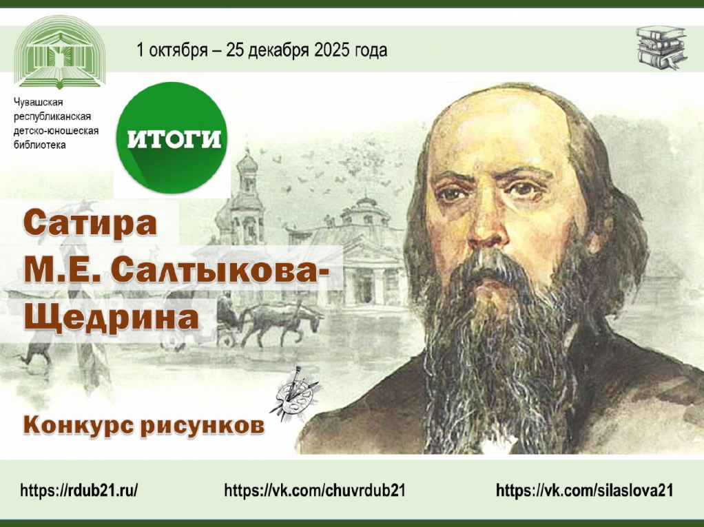 Чувашская республиканская детско-юношеская библиотека объявляет итоги республиканского конкурса иллюстраций «Сатира М.Е. Салтыкова-Щедрина», приуроченного к 190-летию со дня рождения великого русского писателя.