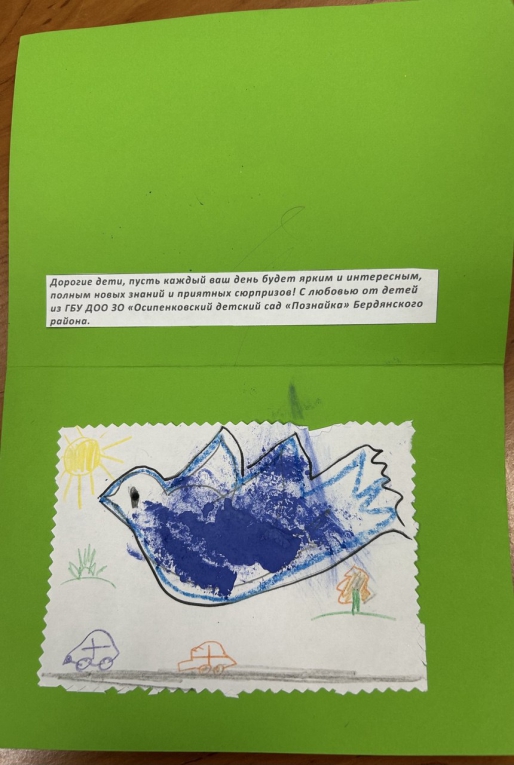 Воспитанники Осипенковского детского сада «Познайка» Бердянского района создали теплые праздничные послания, рисунки, полные светлых пожеланий.