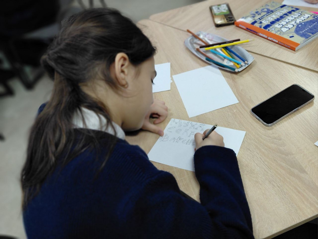 После теоретической части участников ждало творческое задание – самая захватывающая часть занятия. Каждому школьнику предложили разработать собственный уникальный шрифт, вложив в него долю юмора и фантазии. Результаты поразили своей яркостью и оригинальностью: каждый участник стремился наполнить свою работу магией и весельем.