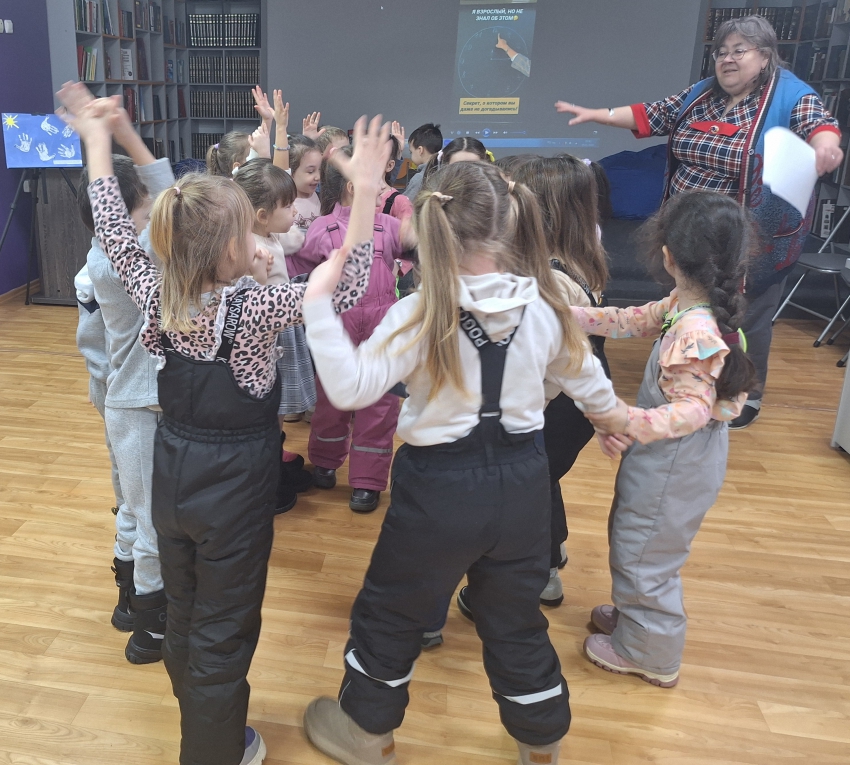За окном стоял мороз, а в библиотеке было тепло, уютно и весело. Библиограф предложила ребятам совершить во время встречи три волшебных «П-действия»: подумать, поиграть и поделать.
