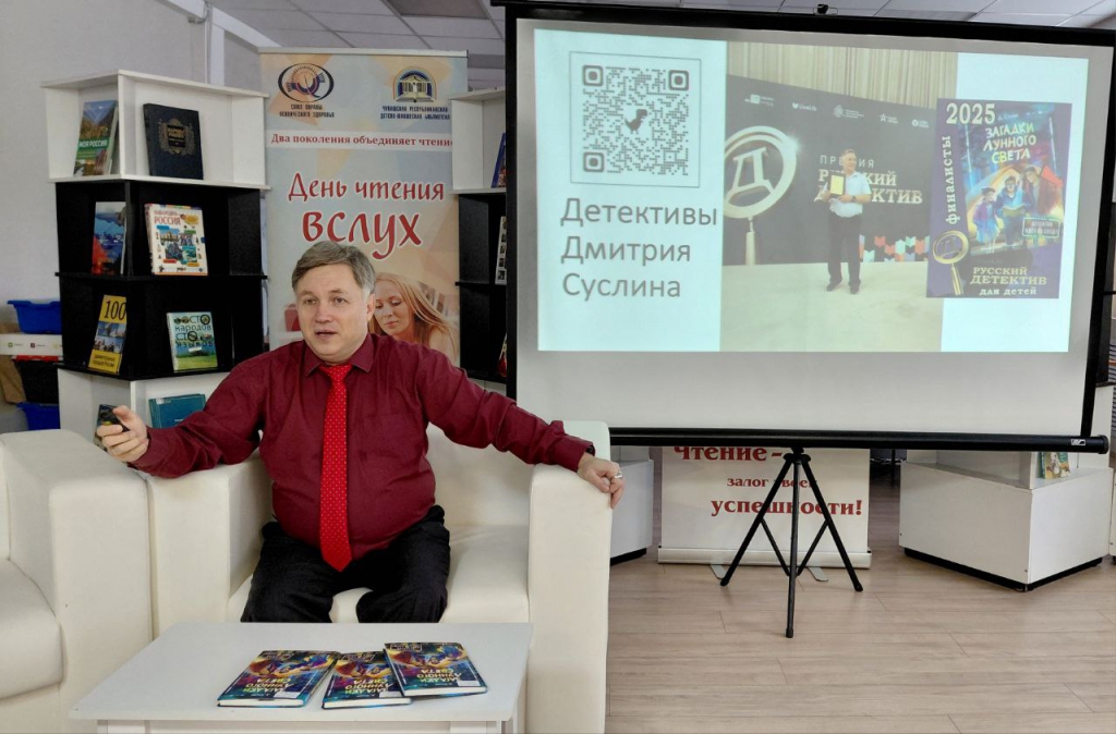 В Чувашской республиканской детско-юношеской библиотеке в рамках литературной лаборатории «Сила слова» прошла встреча с элементами мастер-класса «В гостях у детектива», главным героем которой стал писатель Дмитрий Суслин. На занятие пришли владельцы «Пушкинской карты» – обучающиеся 9-го класса школы №20 г. Чебоксары.
