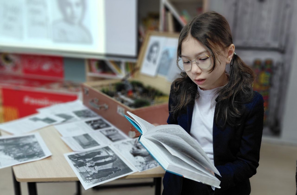Особую эмоциональную глубину встрече придала литературно‑музыкальная композиция «Жила‑была девочка Таня», созданная по мотивам произведения Ю.В. Яковлева «Девочки с Васильевского острова». История маленькой героини ожила благодаря художественному чтению и музыкальному сопровождению. Фрагменты кинохроники и архивные материалы усилили ощущение сопричастности к происходящему. Внимание было сосредоточено на судьбах детей, оказавшихся в эпицентре исторических событий. Рассказы об их повседневном героизме помогли обучающимся осознать, каково это – расти и выживать в условиях блокады.