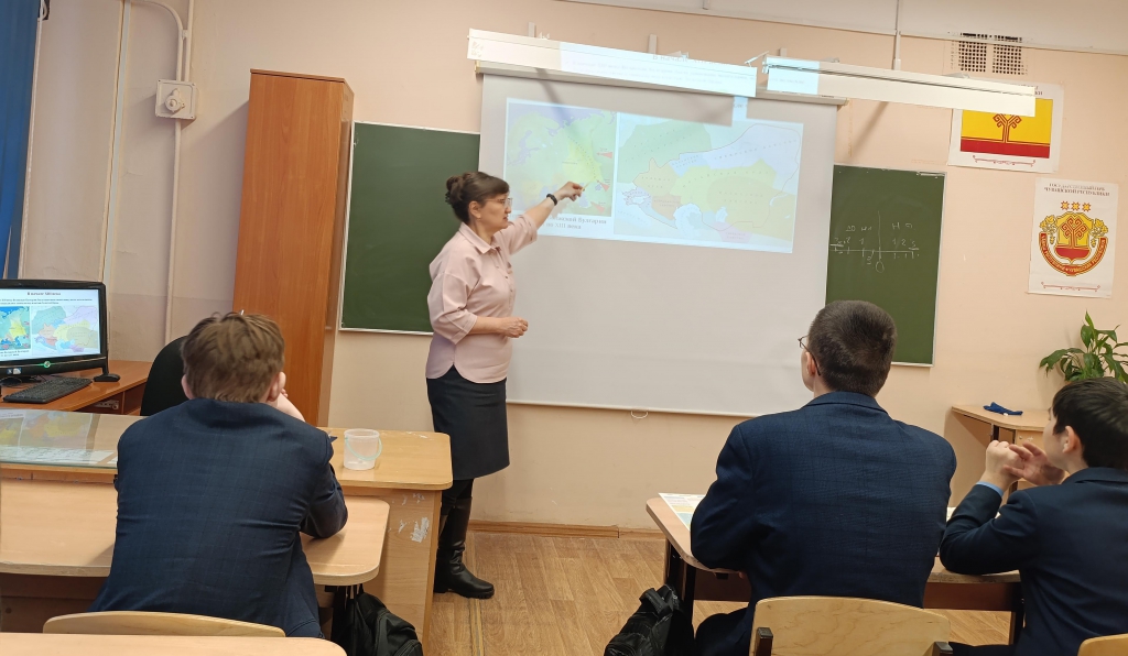 Особое внимание в ходе занятия было уделено рассмотрению фундаментальной научной концепции о булгаро-чувашской языковой и этнокультурной преемственности. Учащиеся ознакомились с историей прототюркских групп в Центральной Азии, становлением и эволюцией ранних государственных образований, таких как империя Хунну и Великая Болгария. Детально был освещен процесс образования и историческая роль Волжской Булгарии как непосредственной предшественницы современной чувашской народности, а также уникальность чувашского языка как единственного живого представителя булгарской подгруппы.