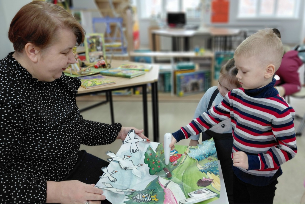Воспитанники детского сада № 75 г. Чебоксары стали активными участниками громких чтений, погрузившись в мир волшебства и народных традиций. Ребята прослушали известную русскую народную сказку «Гуси-лебеди» в ходе использования интерактивного комплекта «Путешествие по странам и континентам» из серии «Волшебный карандаш».