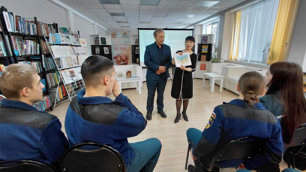 Ведущая встречи – заведующий отделом краеведческой и национальной литературы Эвелина Малеева ознакомила молодых людей с многогранной личностью: не только признанным литератором, но и кандидатом технических наук, мастером спорта, заслуженным путешественником Российской Федерации и чемпионом мира по спортивному туризму.